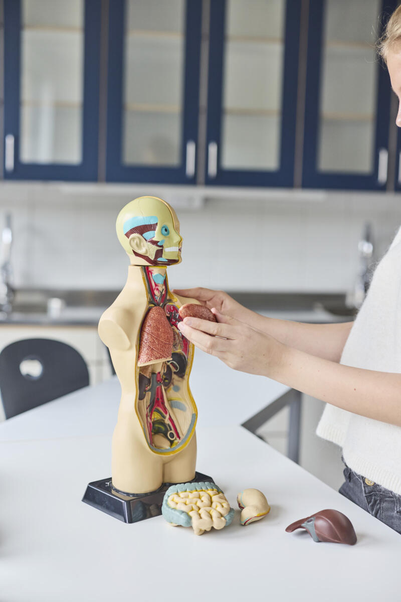 Se hvordan mennesket er "sammensatt". 11 deler til å ta fra hverandre. Høyde 50 cm. Stativ av ABS-plast og kropp av PVC, uten ftalater. Håndmalt i realistiske farger. Uknuselig. Fra 8 år.