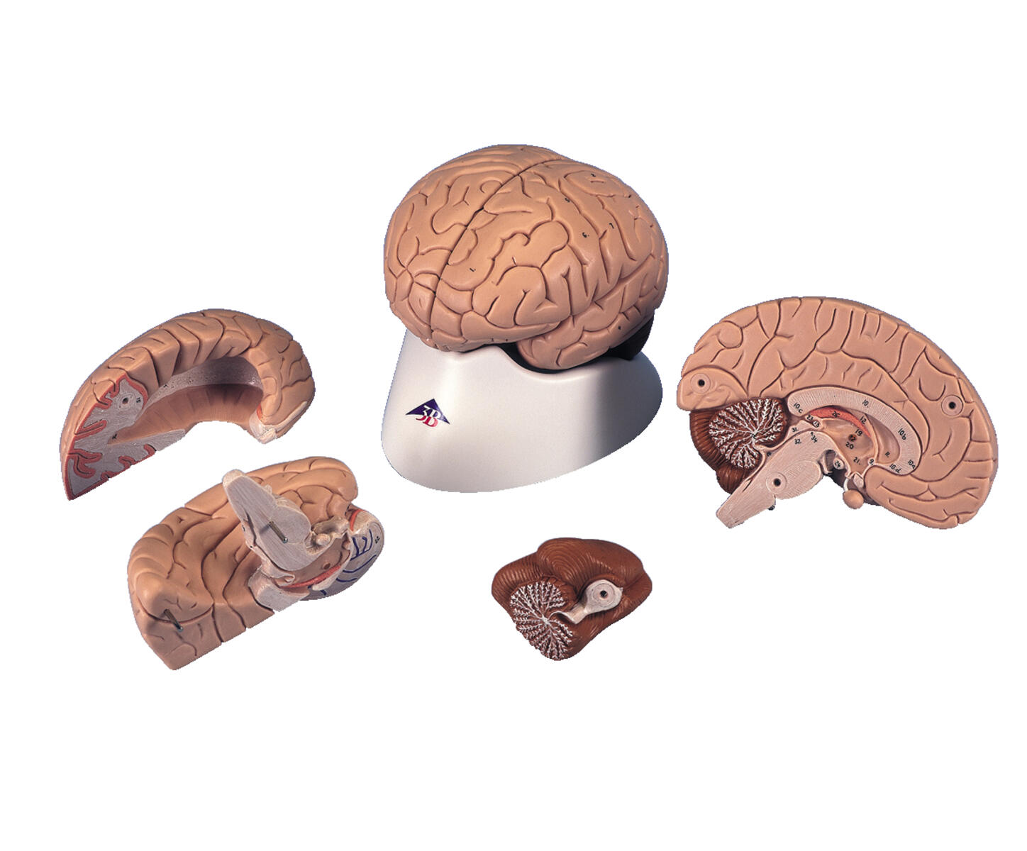 Detaljert og delbar hjerne i naturlig størrelse med tydelig merkede arterier. Hver halvdel kan deles inn i 4 deler og arterien kan tas av. Et utmerket verktøy for å lære om det menneskelige nervesystemet og hjernens anatomi.