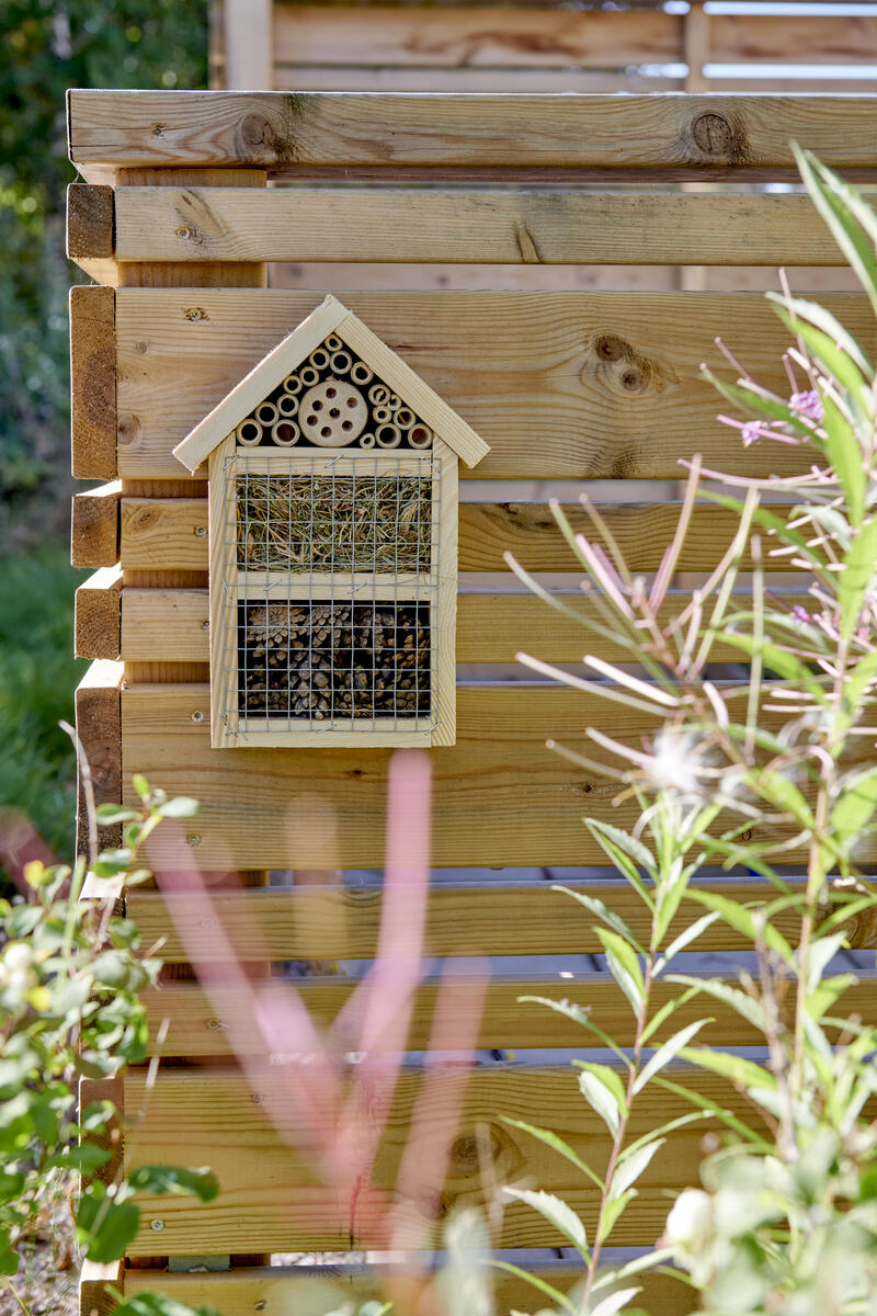 Insekter er en ekstremt viktig del av det biologiske mangfoldet og å fremme mangfold er i dag viktigere enn noen gang. Lekolars insekthoteller holder høy kvalitet og er laget av slitesterkt, solid FSC-sertifisert tre. Taket er behandlet med en luktfri olje som er ufarlig for insekter. Takket være insekthotellets røde detaljer vil marihøner, bier og andre insekter bli trukket til reiret. Insekthotellet er designet med rør og andre smårom spesielt egnet for insekter som bier, veps og marihøner. For å gi insektene best overlevelsessjanser bør insekthotellet plasseres i nærheten av blomstrende planter og trær, ca 1,5 m over bakken og østvendt. Leveres ferdig montert med rustfrie skruer. Mål: 41x27x15 cm
