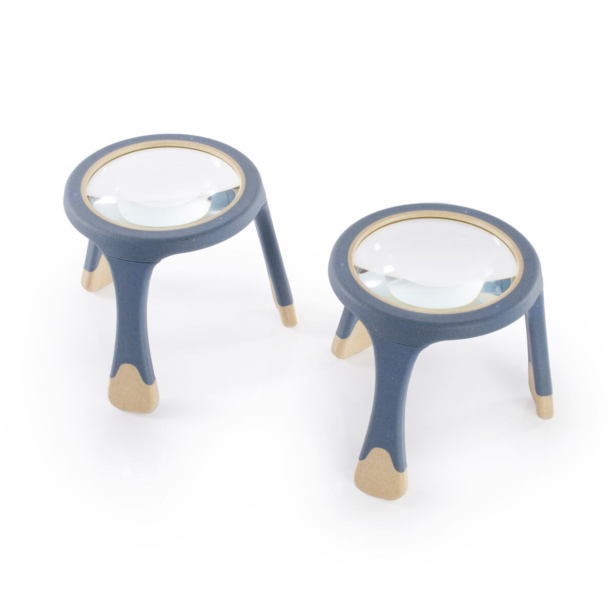 Stødige forstørrelsesglass som forstørrer 5 ganger gjennom en ripebestandig glasslinse. De er vannbestandige og svært godt egnet til bruk både innendørs og utendørs. Siden forstørrelsesglasset står på ben, får barna hendene fri og kan plassere og holde gjenstander de ønsker å undersøke nærmere. Mål: 18 x 18 x 15 cm. Fra 3 år.