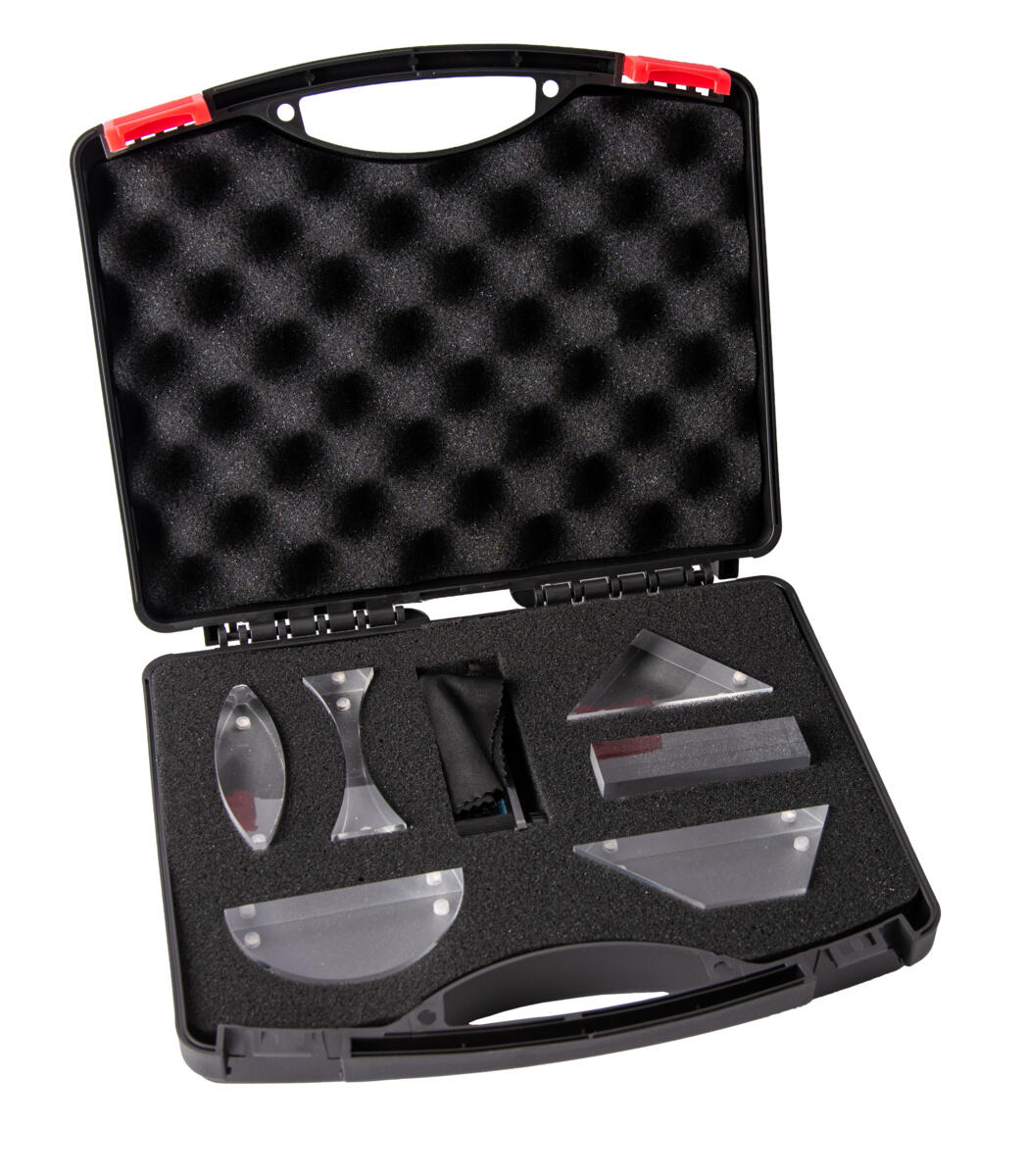 Sett inneholder 7 ulike optiske modeller, 3 linser, 3 prismer, et speil samt poleringsduk. De optiske modellene leveres i en slagfast koffert med innlegg av skumgummi. Linsene og prismen er cirka 8 cm lange.