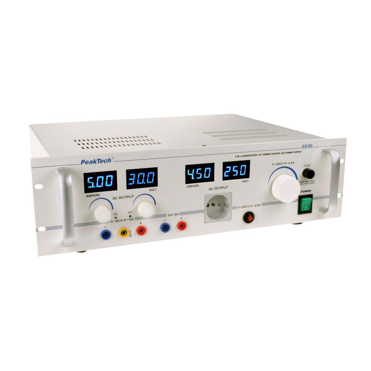En justerbar isoleringstransformator med 2-i-1-funksjon, som har to trinnløst justerbare utganger for både vekselstrøm (AC) og likestrøm (DC), samt en fast spenningsutgang på 5 V. Enheten er beskyttet mot skader fra overbelastning og kortslutning gjennom pålitelig overspenningsvern, og er i tillegg utstyrt med aktiv kjøling. Transformatoren kan monteres i et 19-tommers rack eller brukes som en frittstående enhet.