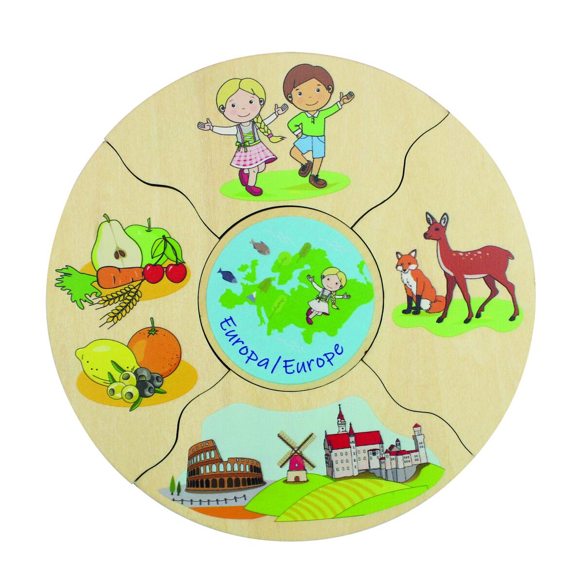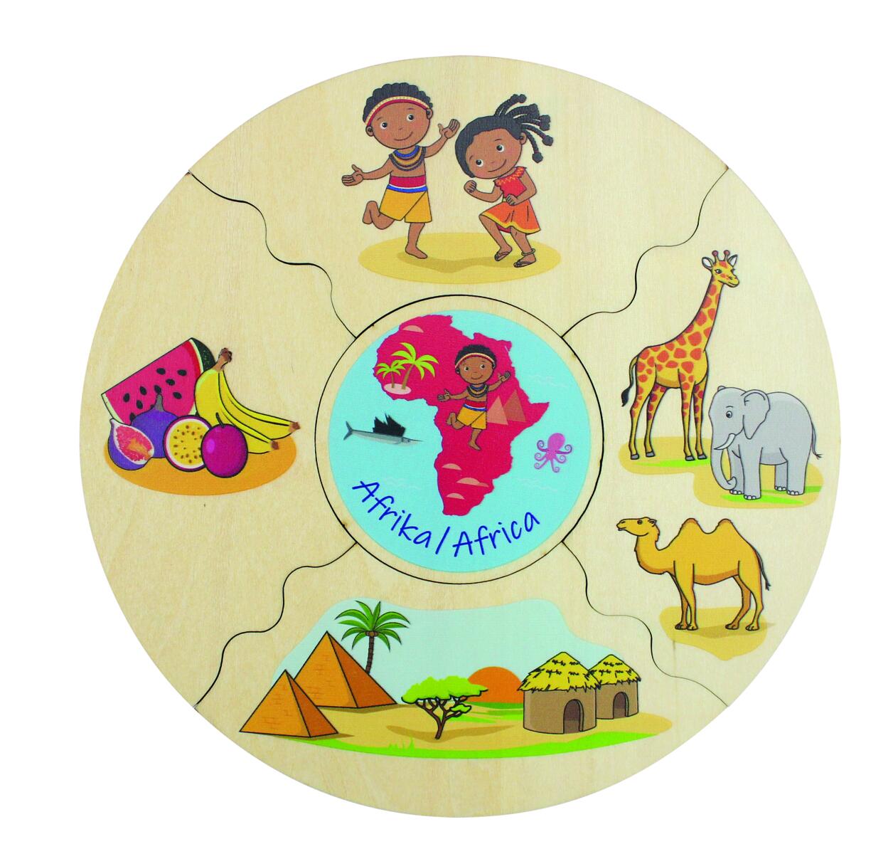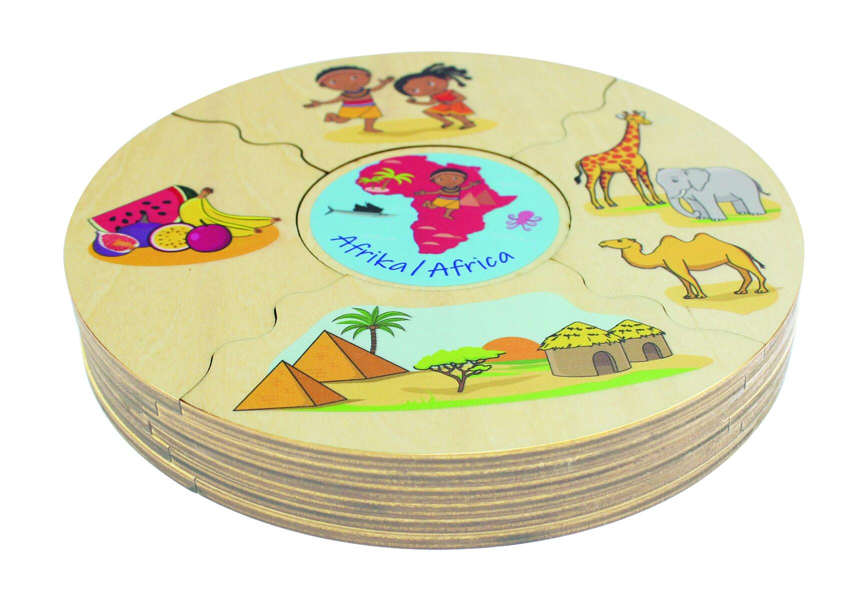 Et morsomt spill der man velger en midtdel, snur alle de andre brikkene opp ned og blander dem. Deretter bytter man på å snu brikkene for å se hvem som får ferdig sin kake først. I denne versjonen utforskes verdens kontinenter. Vi kan snakke om at vi er forskjellige, men også like – hva vi spiser, hvilke byggverk som finnes og hvilke dyr som er spesifikke for ulike deler av verden. Laget av FSC-miks. Mål: 16 cm. Fra 3 år.