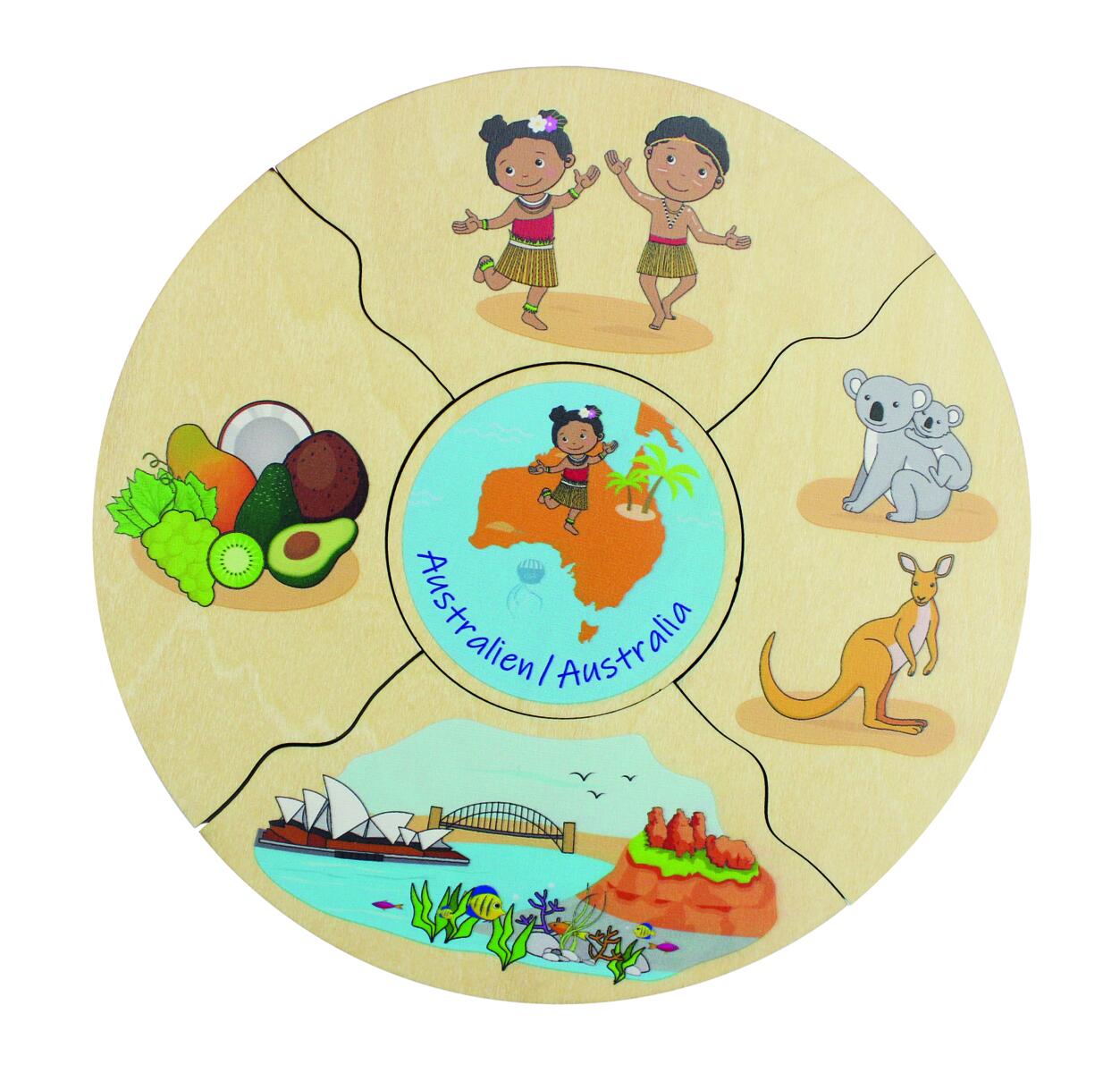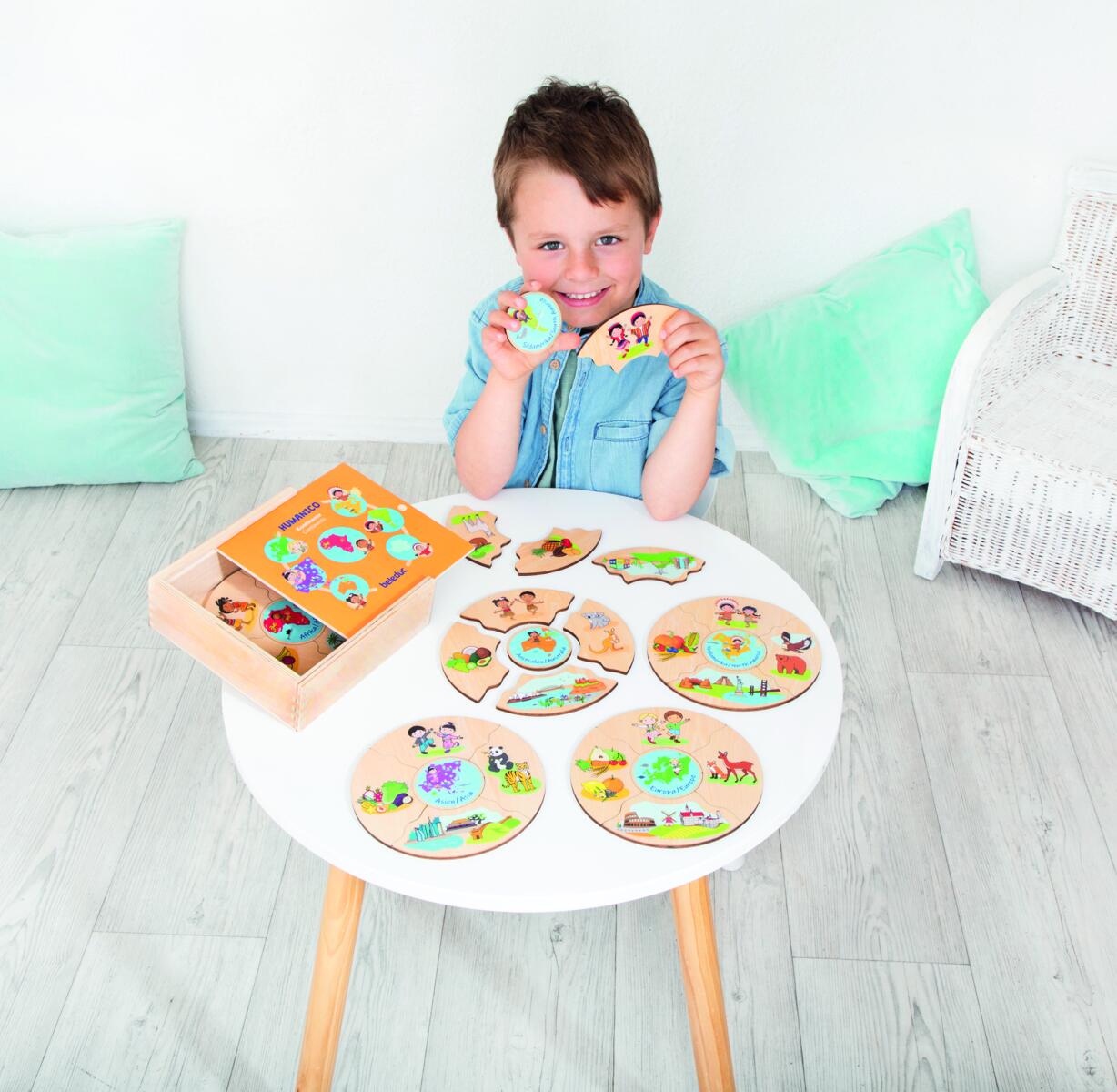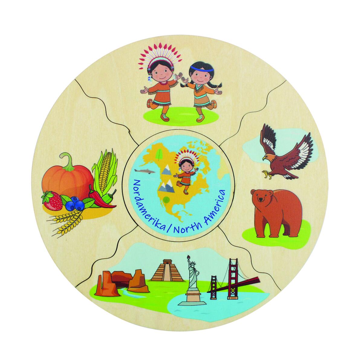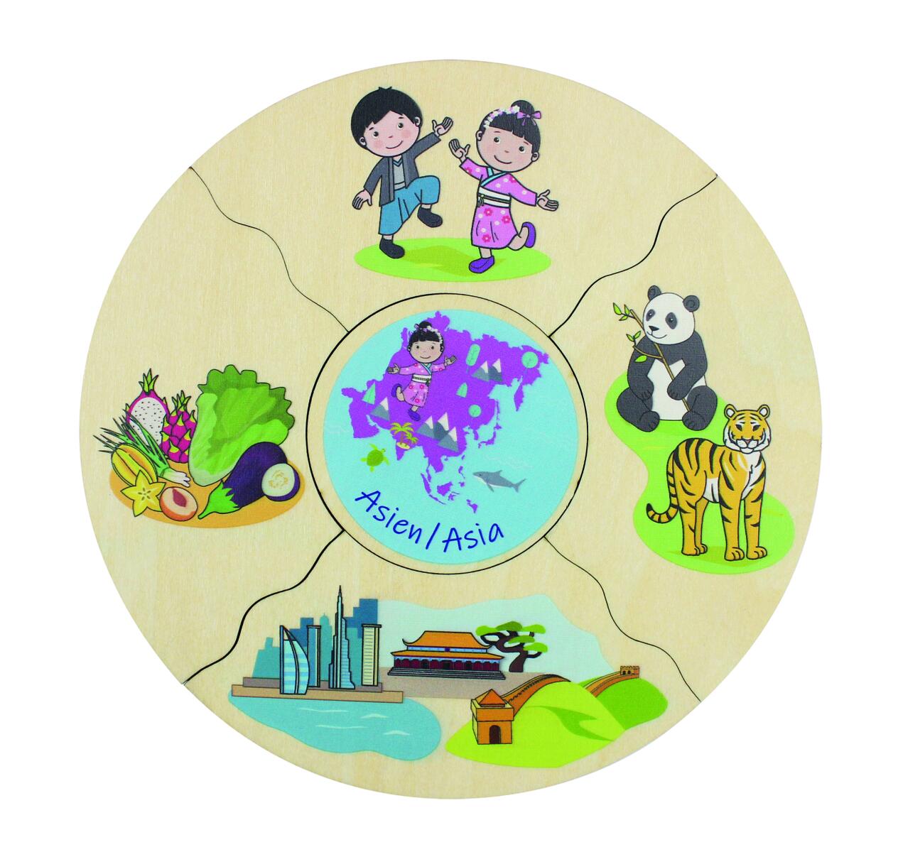 Et morsomt spill der man velger en midtdel, snur alle de andre brikkene opp ned og blander dem. Deretter bytter man på å snu brikkene for å se hvem som får ferdig sin kake først. I denne versjonen utforskes verdens kontinenter. Vi kan snakke om at vi er forskjellige, men også like – hva vi spiser, hvilke byggverk som finnes og hvilke dyr som er spesifikke for ulike deler av verden. Laget av FSC-miks. Mål: 16 cm. Fra 3 år.