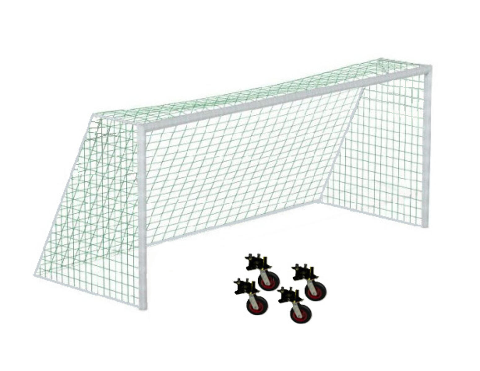 Målet er produsert ihht EN748 og godkjent ihht til gjeldende sikkerhetsforeskrifter. MÅ brukes med motvekter. De tre motvektene kan enkelt flyttes da de har hjul. Mål: 5x2 m. Dybde ved bunn 1,5 m og 0,8 ved toppen. Vekt ca 47 kg. Ramme av 120/100 mm aluprofil med helsveiset aluminium. Grønt nett av kraftig 4 mm polypropen. Knutefritt med maskestørrelse 10 cm. Materialet tåler lave temperaturer, snø og beholder sin karakter når det blir vått. 2 års garanti. Nett av Øko-tex sertifisert PP.