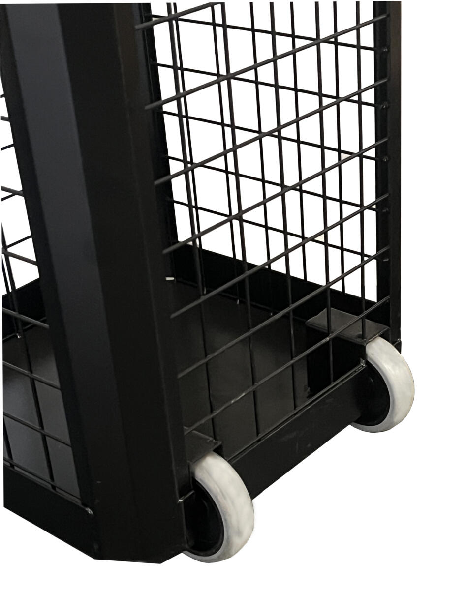 En smart oppbevaring av bandykøller og baller. Køllestativet har hjul på den ene siden for lettere flytting av vognen. Dør til å åpne på langsiden. Kraftig konstruksjon av metall med sveiset stålnett. Med plass til 40 køller og 10 baller, følger ikke med. Vekt 18 kg. Mål: 40x40x125 cm.