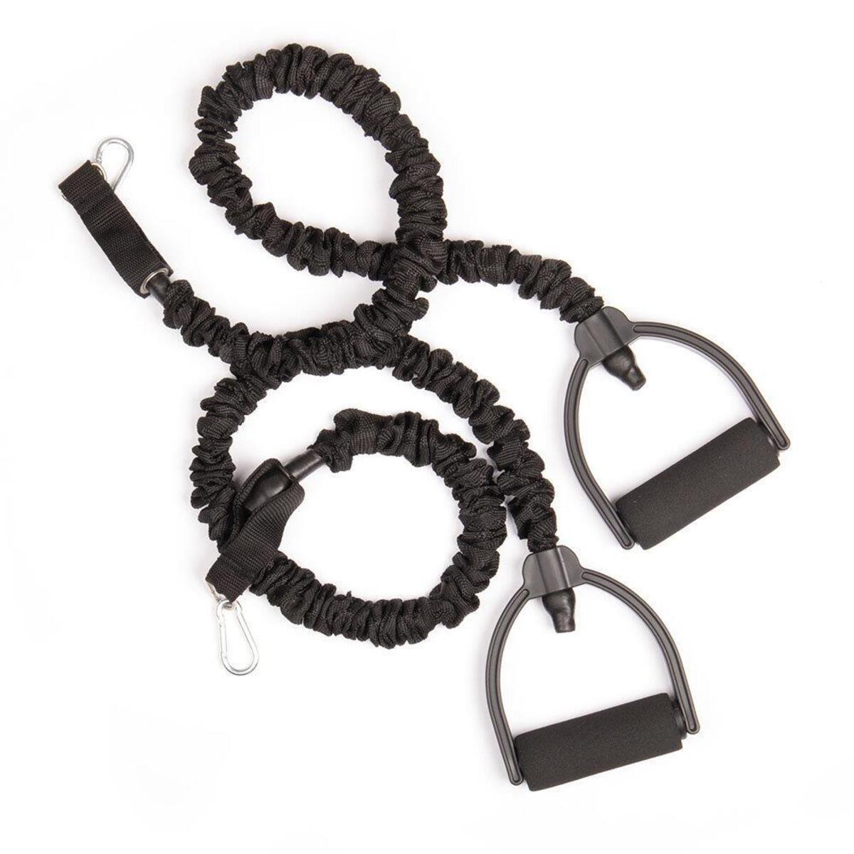 Treningsbånd til balanseball (artikkel 161864) som muliggjør mer intensiv trening. Med håndtakene aktiverer man muskelgrupper som armer, skuldre og kjernemuskulatur under treningen. Laget av TPR og nylon.