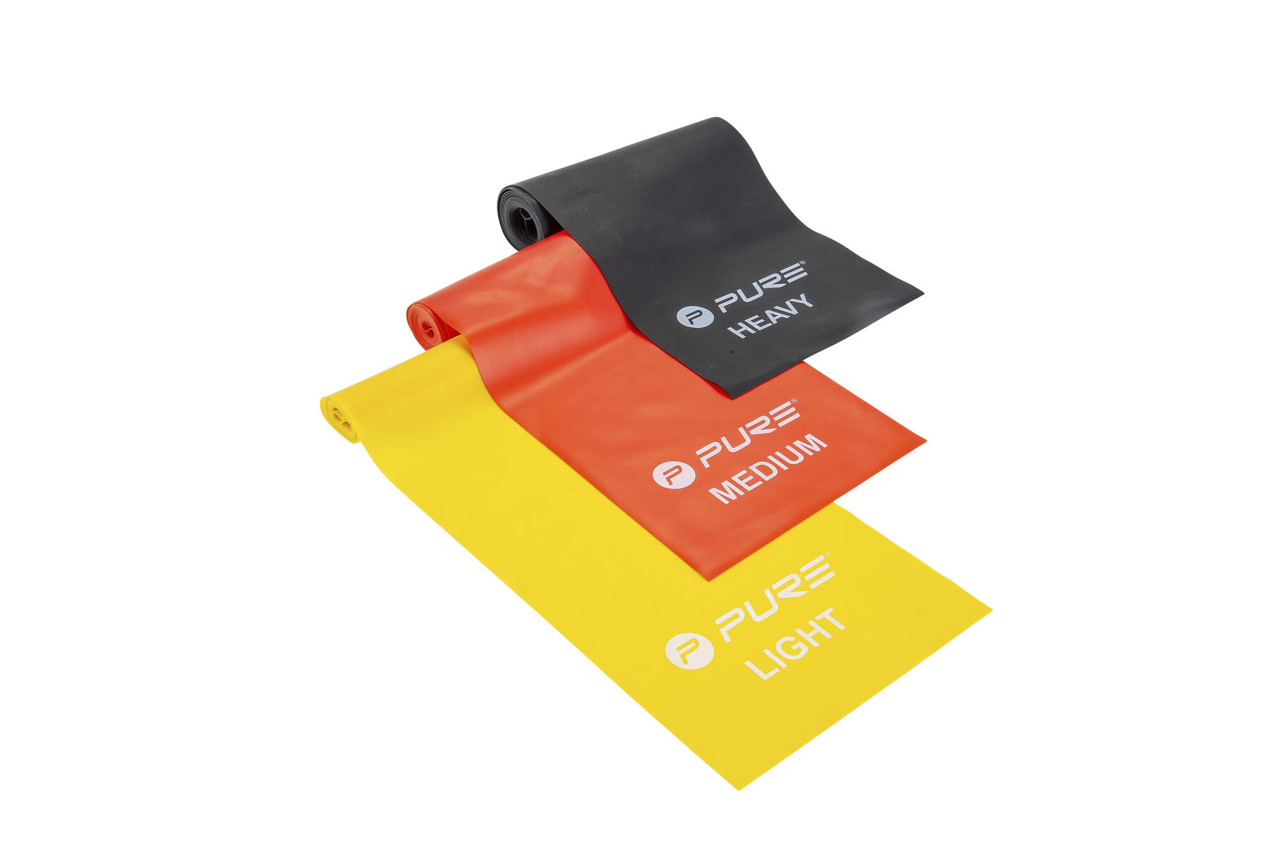 3 stk/pk. En elastisk treningsbånd som er et effektivt og enkelt treningsverktøy. Strikken kan brukes til mange øvelser, ved oppvarming og tøying. Settet inneholder motstandene lett, medium og hard. Laget av lateks.