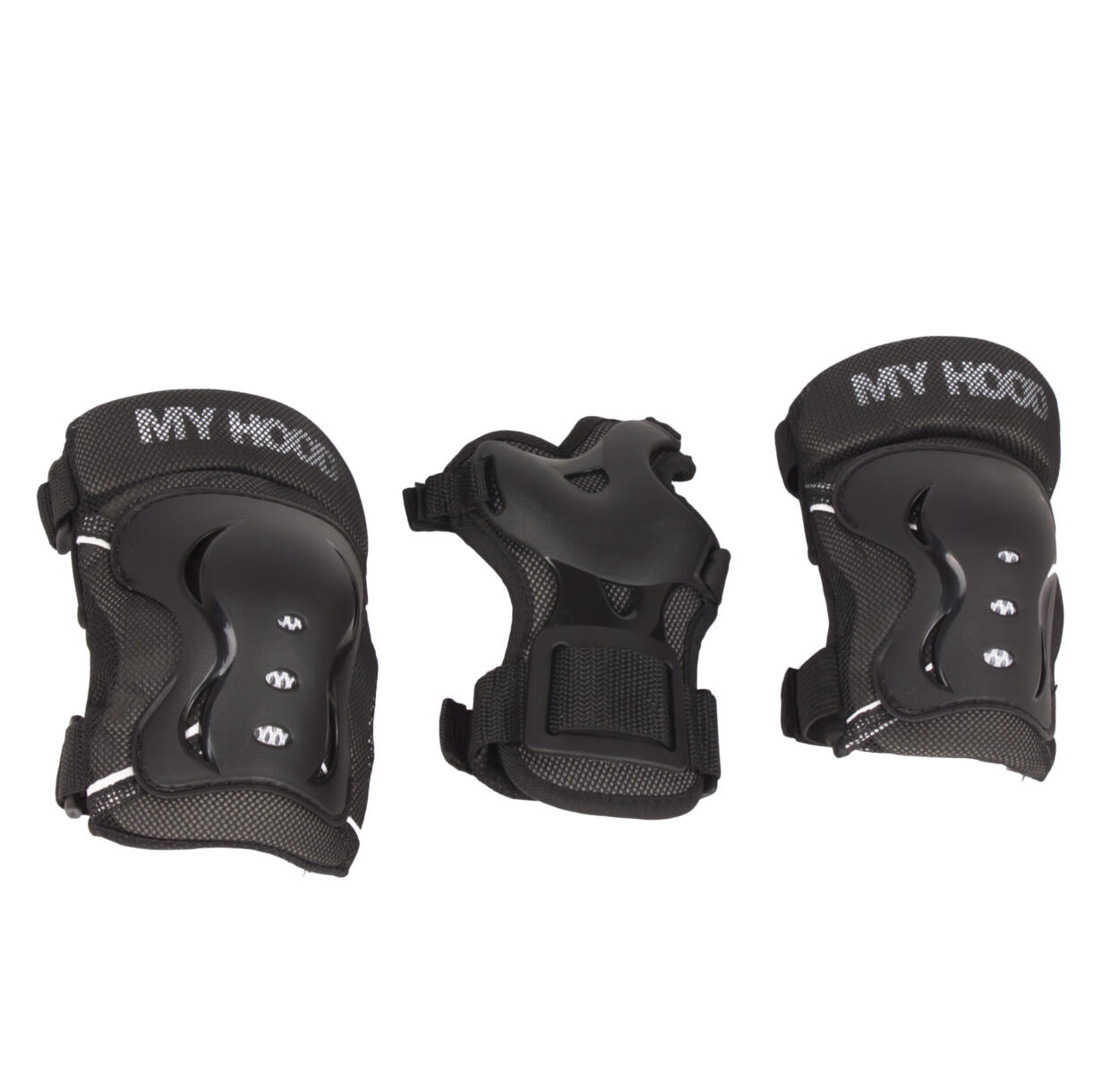 Sikkerhetssett med høy komfort for unge brukere. Passer til sykkel, scooter, skateboard og rulleskøyter. Anatomisk og støtsikkert skall. Inneholder håndledd-, albuebeskyttelse og kneputer med elastiske borrelåsbånd. Testet i henhold til EN14120. Laget av EVA, polyester og PP. Alder 3-5 år. Vekt under 15 kg. Mål på beskyttelse: håndledd: 10-13 cm, albue: 17-20 cm, kne 19-23 cm.