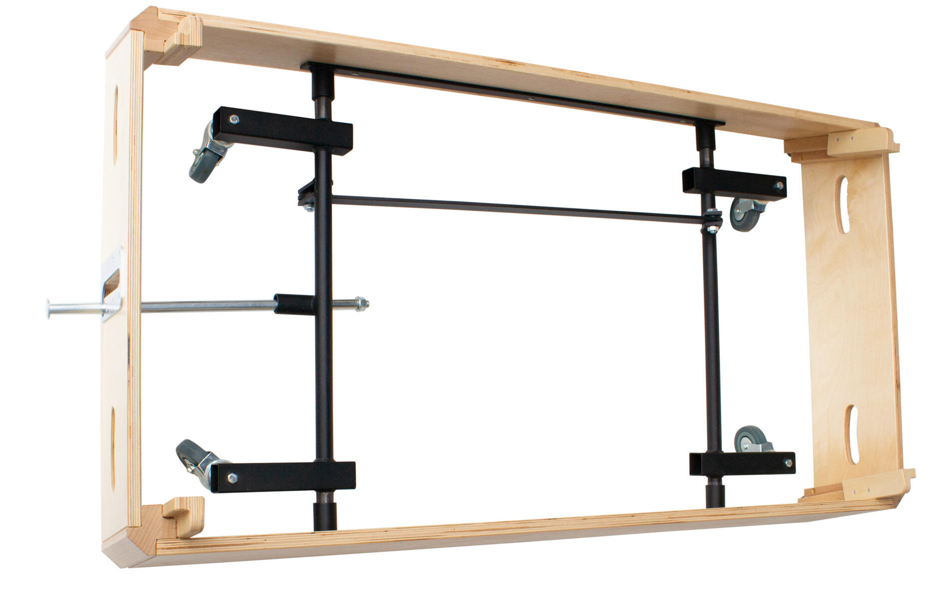 Klarlakkert ribbevegg med 17 ovale ribber av massivt bøk. Rammen er laget av solid kryssfiner. Mål på ribbene 3x4 cm. Totale mål: 90 - 256 cm. Godkjent iht. Standard PN-EN 12346: 2001 og 913: 2008. Hengere for å feste ribbeveggen til veggen er inkludert.