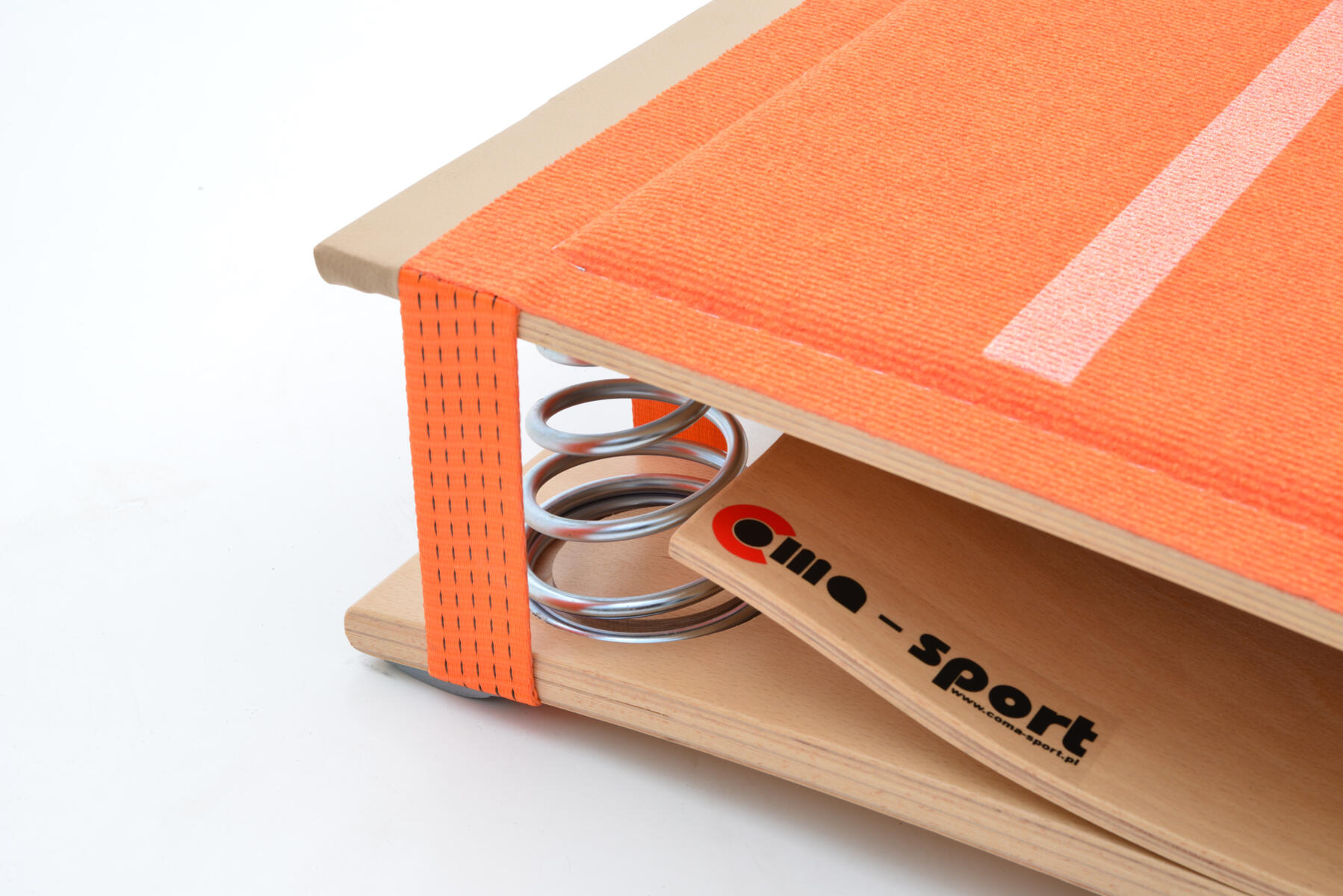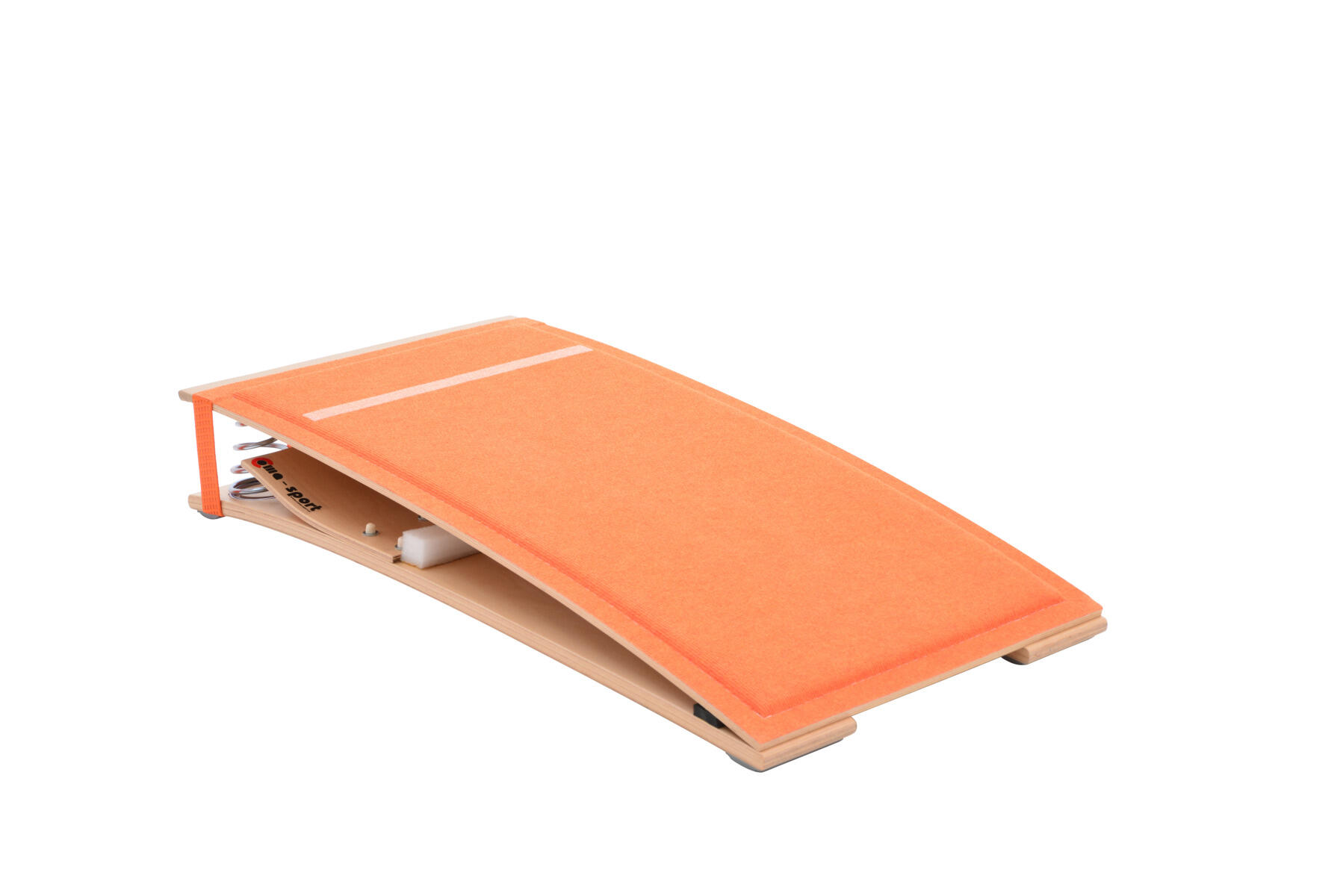 Springbrett med konstruksjon laget av spesialstøpte kryssfiner-elementer i løvtre, utstyrt med to ekstra konformede, kraftige stålfjærer for økt hoppdynamikk. Springbrettet har en polstret matte, og under matten er det lagt et lag med resirkulert skum for å sikre gode støtdempende egenskaper. Underdelen er utstyrt med sklisikre, ikke-merkende gummiputer som gir utmerket stabilitet og beskytter gulvet. Mål: 120x60x21 cm. Testet i henhold til PN-EN 913:2019-03.