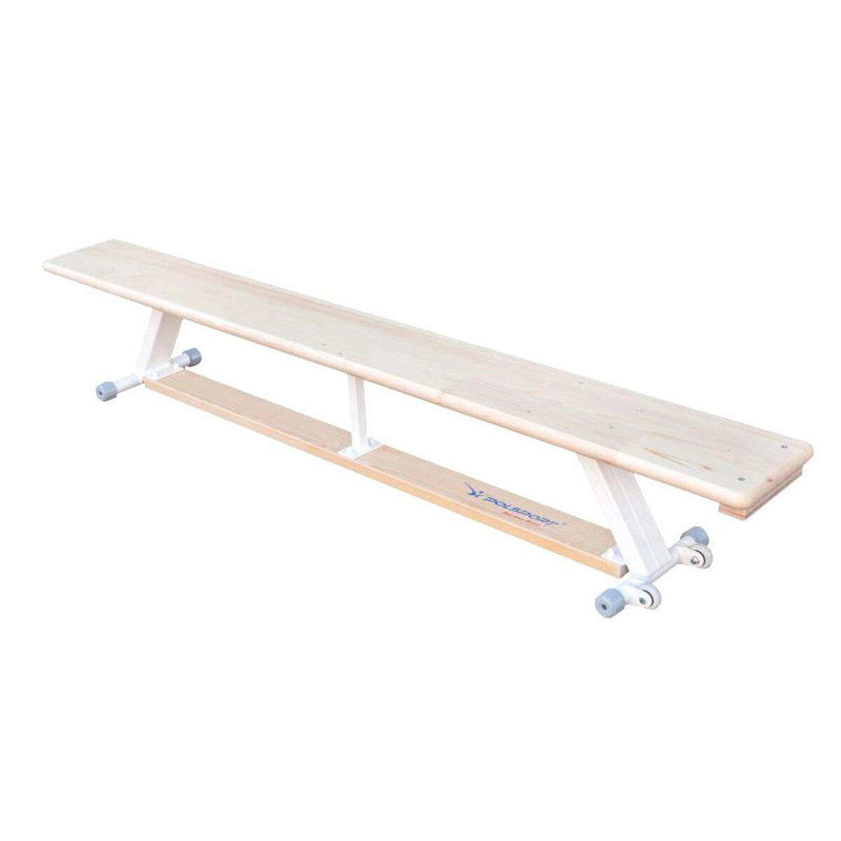 En gymnastikkbenk i klarlakkert heltre fingerskjøtet furu med et "feste" under for festing i ribbevegger eller pallplinter. Antiskli for å forhindre at den glir på underlaget. L300 x B22 x H30 cm. Balanseplaten i bunnen er 10 cm bred. Godkjent ihht Standard PN-N-97063: 1996 og PN-EN 913: 2008.