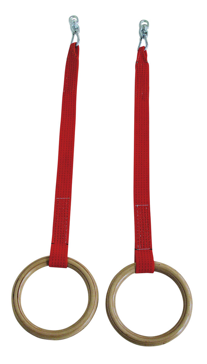 Turnringer av kryssfiner med sertifisert sele av nylon. Med snurrekrok som gir jevn rotasjon av ringene. Selen er 80 cm lang. Gymnastikkringene følger PN-EN 12655 normene. Innerdiameter 180 mm. Ringene er Ø28 mm tykke. Takfeste følger ikke med. OBS! Ringene er ikke leketøy og bør brukes under oppsyn av voksne.