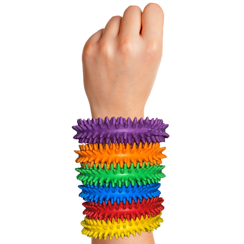 6 stk/pk. Sensoriske ringer i 6 forskjellige farger som fungerer godt å dra i når følelsene tar overhånd. Kan brukes som armbånd og tilbyr en taktil stimulering som lindrer stress og uro. Mål: 11 cm.