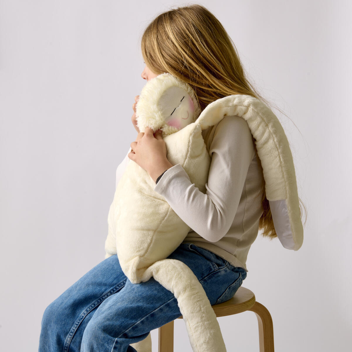 Denne klemmedukken har tunge armer og ben samt et bankende hjerte og en musikkspiller. Lades med medfølgende kabel. Vaskes i medfølgende vaskepose. Mål: 45x35x16 cm. Vekt: 1,6 kg. Fra 4 år.