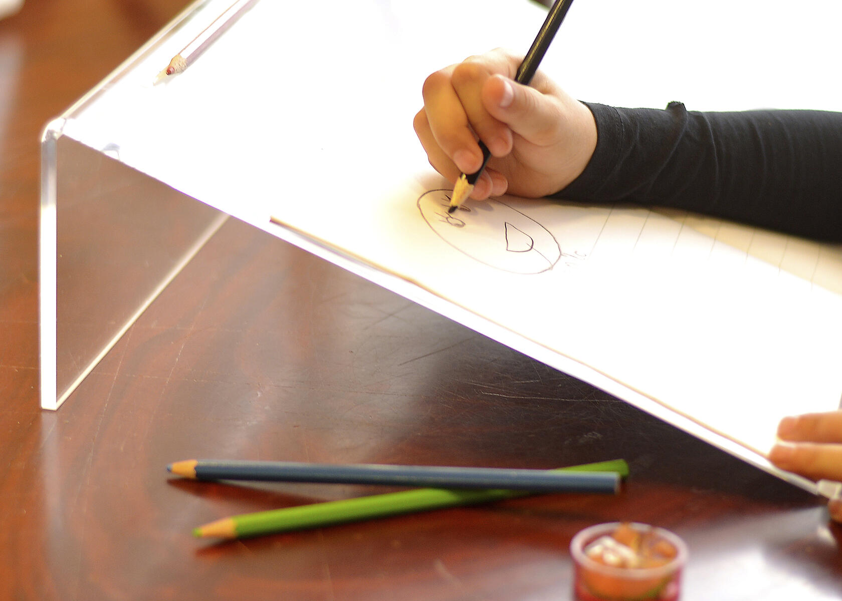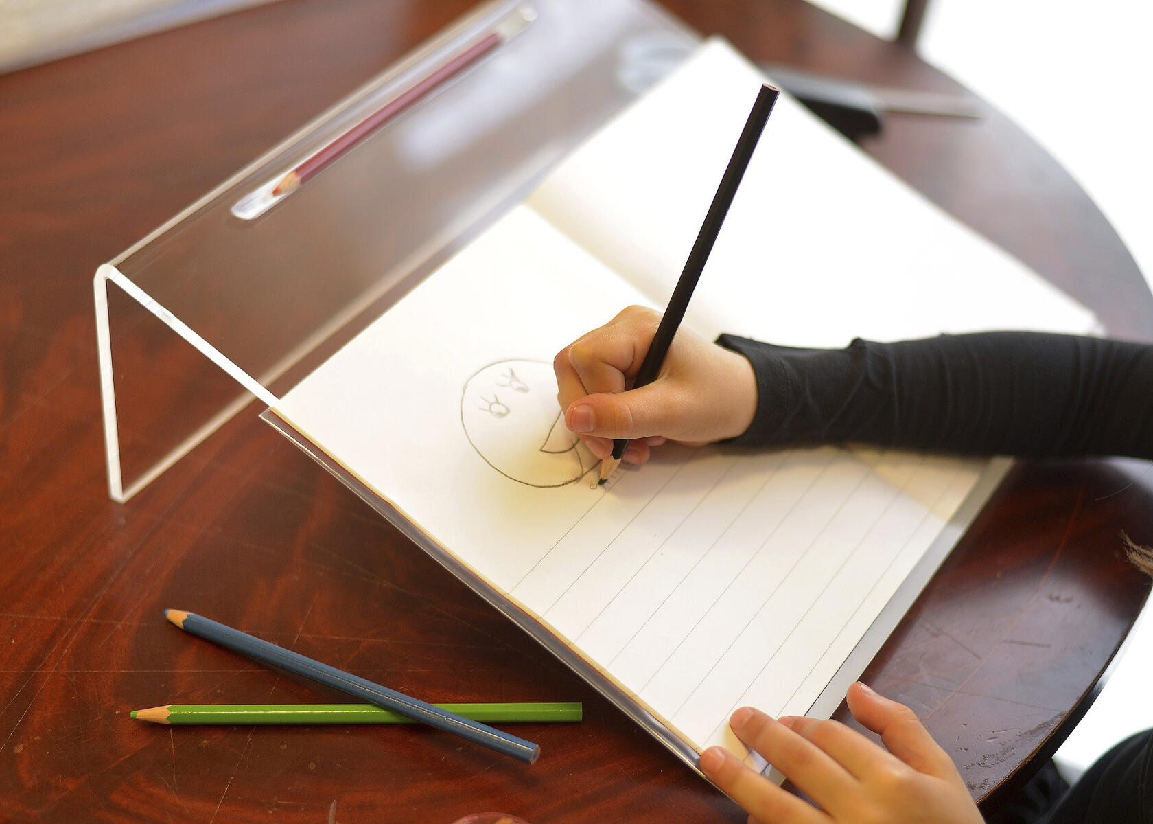 Med denne skriveplaten som skrår 20 grader, får du en bedre posisjon når du skriver. Overflaten er glatt for å bruke begge hender - en hånd for å holde papiret og en for å skrive. Mål: L33xB35 cm.