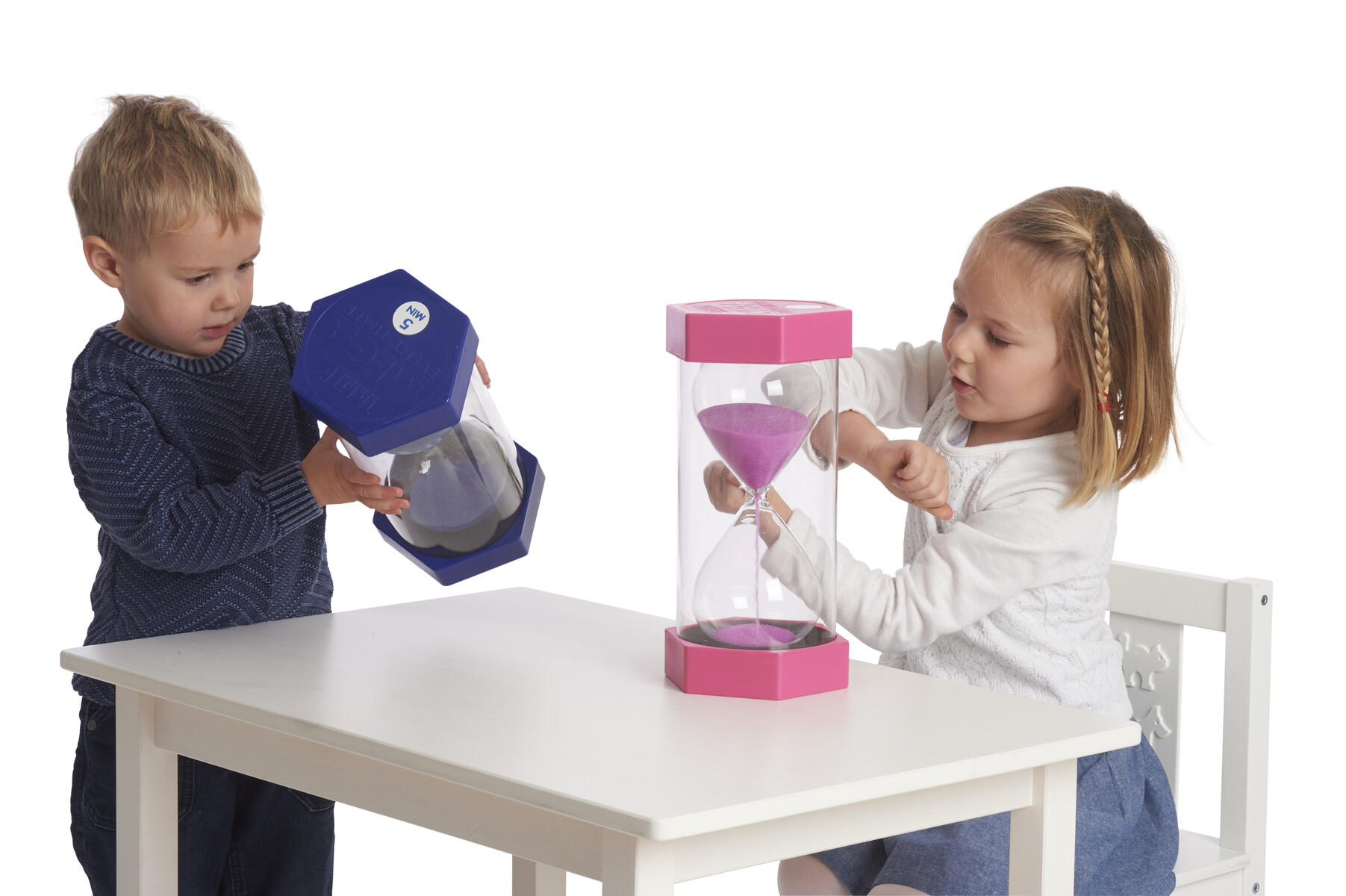 Solid gigantisk timeglass i klar plast med støpte baseplater. Konkretiser tiden og tidsbegrep for barna. Perfekt til eksperimentering, spill og lek. Av PE, PU og akrylplast. Ø15 cm, høyde 30 cm. Fra 3 år.