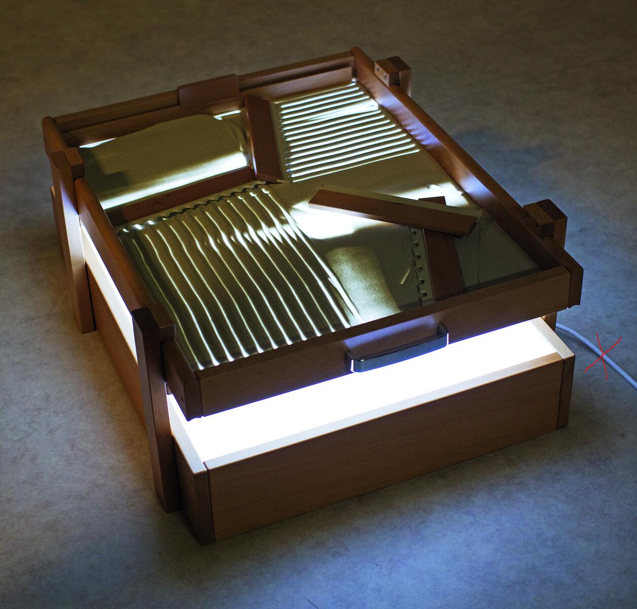 Lysbord for utforskning og kreativ læring, spesielt utviklet for barnehage. Lysbordet er utstyrt med en LED-lyskilde som avgir et behagelig, jevnt arbeidslys på hele overflaten med 1050 lumen. Estimert levetid er 60 000 timer. Plate av pleksiglass. Låsbare hjul. Ramme i kryssfiner. 1,8 m ledning med bryter.