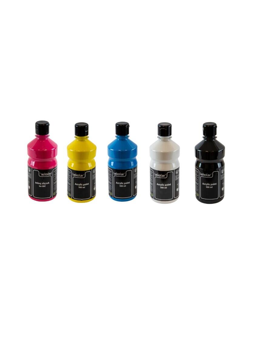 5x500 ml. Vannbasert og lysekte akrylmaling med høyt pigmentinnhold. Kan brukes på de fleste underlag som lerret, lerret, papir, tre og leire. Pensler og verktøy rengjøres i vann før malingen tørker. Gir en halvblank og vannfast overflate. Tørketid ca 15 min. Malingen kan smitte av før den er helt tørr, beskytt alltid klær og ømfintlige overflater. Komplett fargelæresett av akrylmalingen vår inneholder 1 flaske av hver primær gul, magenta, cyan, svart og hvit.