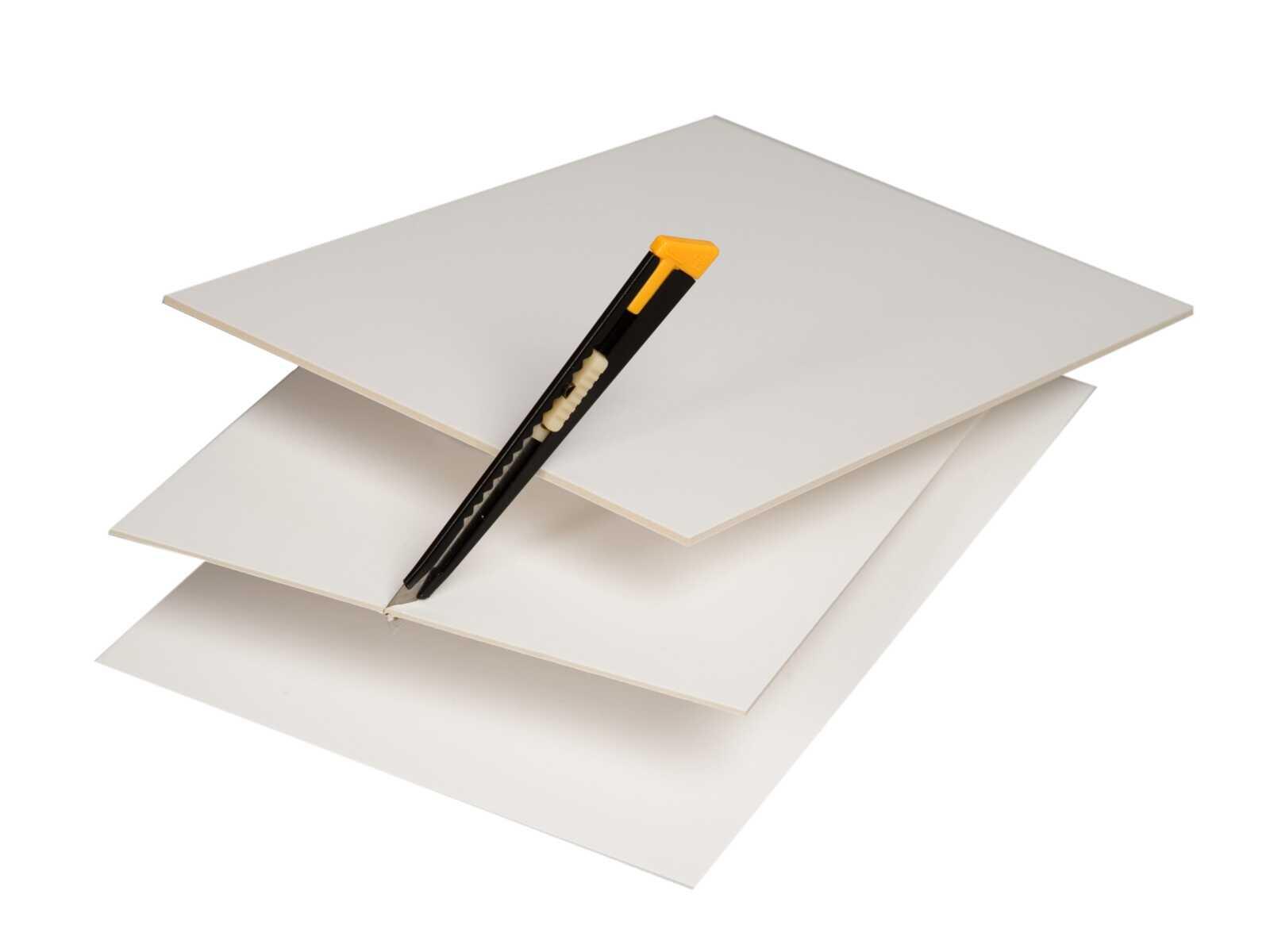 2 stk/pk. 5 mm tykk. 50x70 cm. Stiv, men lett plate for modellbygging, hobby og montasje. Glatt overflate av hvit papp med midtsjikt av polystyrenskum. Enkel og ren tilskjæring med tapetkniv 76419.