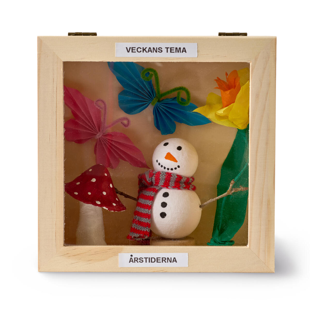 Lag et titteskap eller bruk til synlig oppbevaring. Laget av ubehandlet tre med dør/lokk i plast. Mål: 20x20x11 cm. Laget i FSC-merket furu, bunn av kryssfiner og lokk av polystyren.