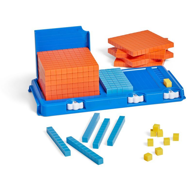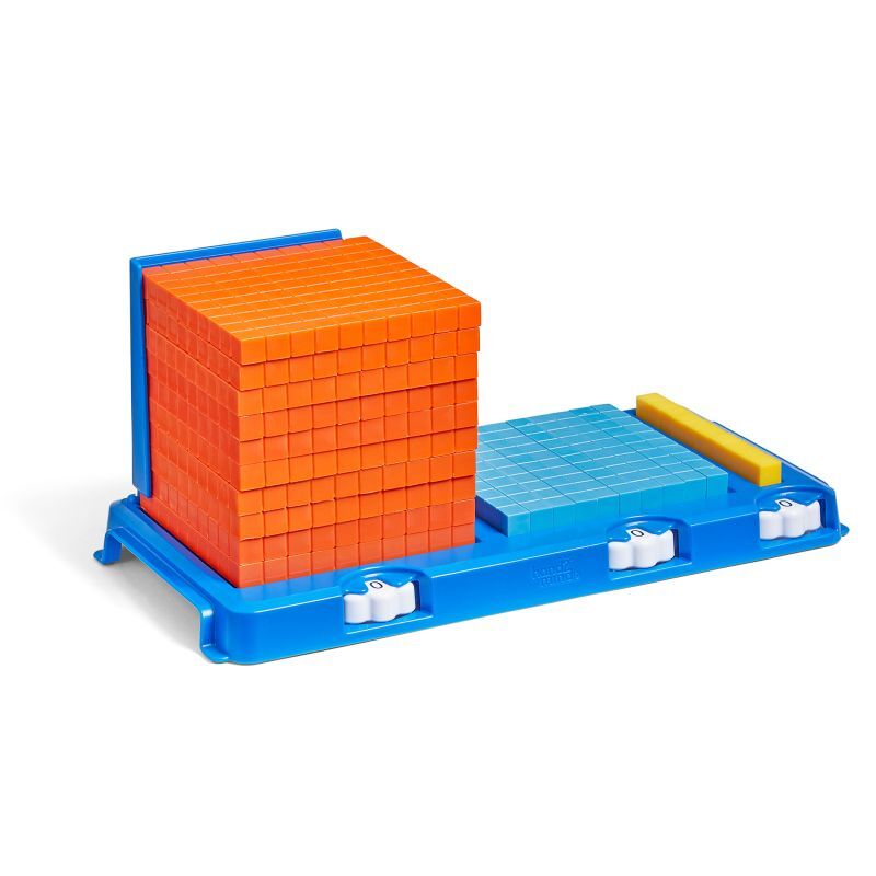 Et sett som brukes for å bedre forstå tallsystemet (vårt titallsystem) og som fungerer godt som støtte når man regner med brøk. Det passer også godt til å estimere og beregne volum og areal. Innhold: 1 rød tusenkube, 10 blå hundretall, 10 grønne titall samt 100 gule ettallskuber. Av polystyrenplast. Fra 6 år.