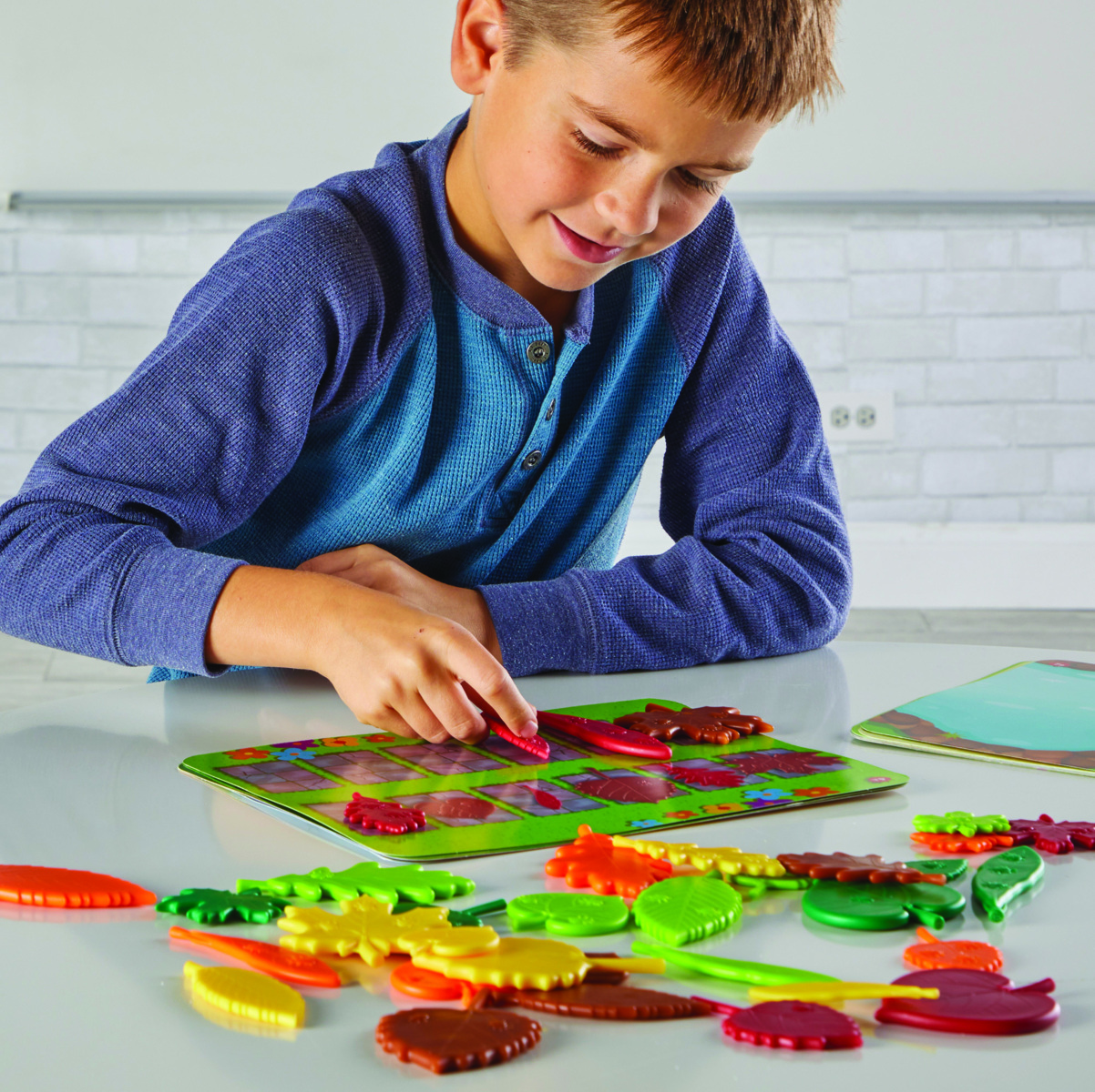 Et taktilt mattesett for nybegynnere. Aktivitetskort og guide introduserer tidlige matematiske ferdigheter og inkluderer forslag til andre morsomme, naturrelaterte aktiviteter. Inneholder forskjellige typer blader i 6 forskjellige farger og 3 forskjellige størrelser. Taktile insekter på baksiden av bladene gir enda flere måter å telle og sortere på. Materiale: resirkulert LDPE. PVC-fri. Fra 3 år.