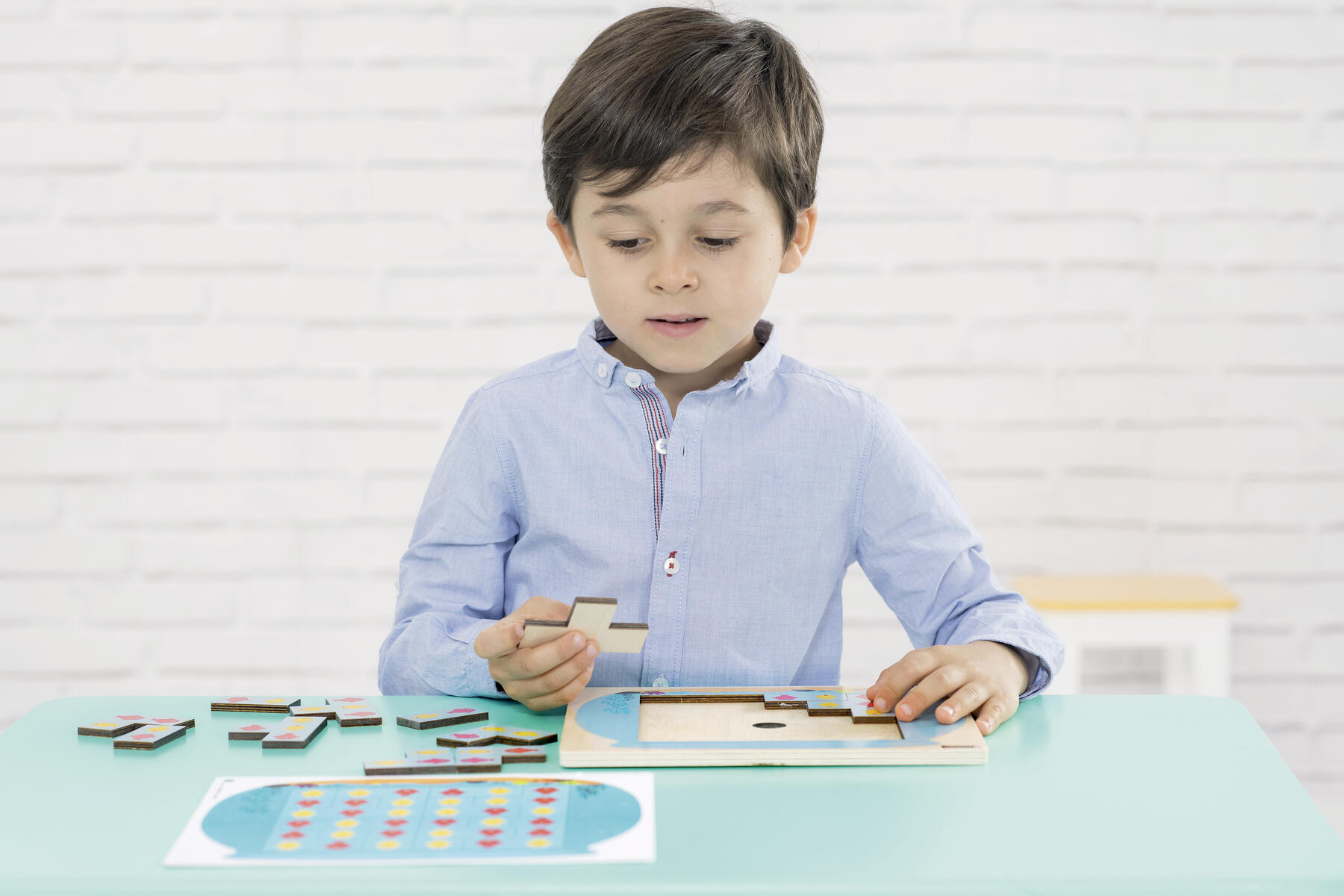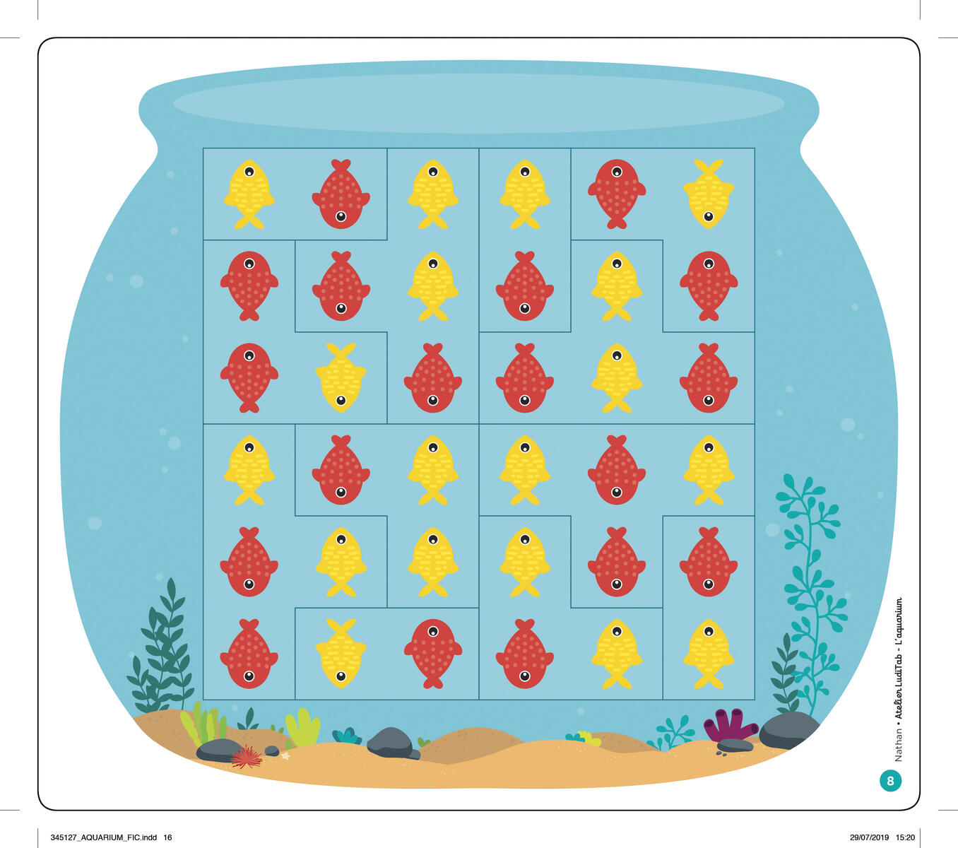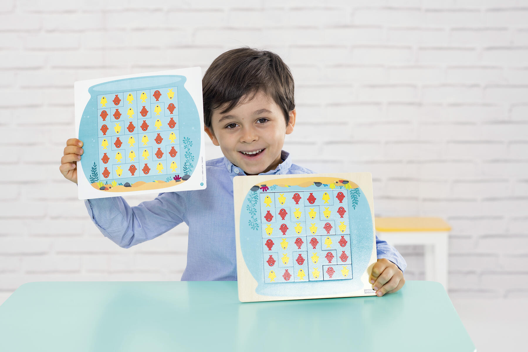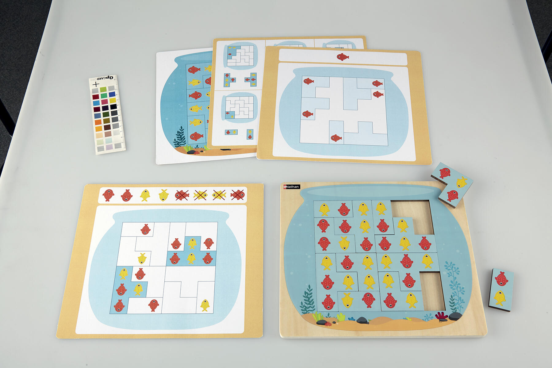 Plasser fisken i akvariet. Spill med to forskjellige vanskelighetsgrader som lærer barna gjenkjennelse ved å reprodusere et arrangement av brikker basert på en mal. Trener koding, rombevissthet, tyde instruksjoner og forstå ledetråder. Utvikler deres logiske tenkning og problemløsningsevne ettersom barna kan trekke sine egne konklusjoner og forutsi hvor fisken skal plasseres.