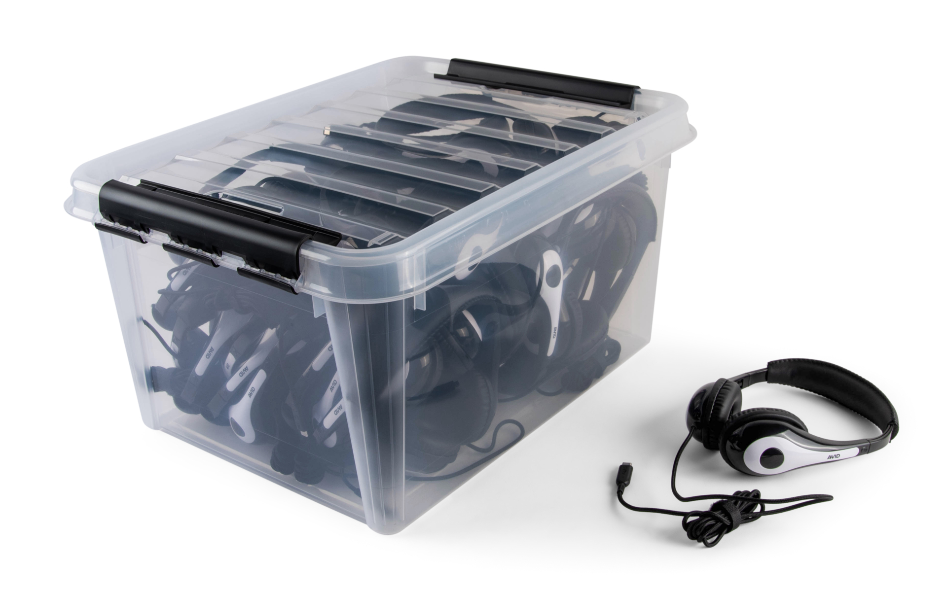 30 hodetelefoner i oppbevaringsboks. Tyggebestandig kabel med forsterkede kabelfester. God lydkvalitet. Støyreduserende ørekopper. Justerbar, myk og polstret konstruksjon. USB-C. Ledning: 180 cm. Vekt: 93 gram. Fra 3 år.