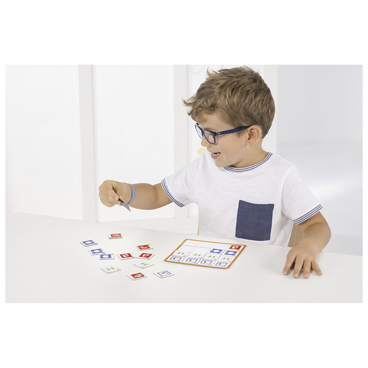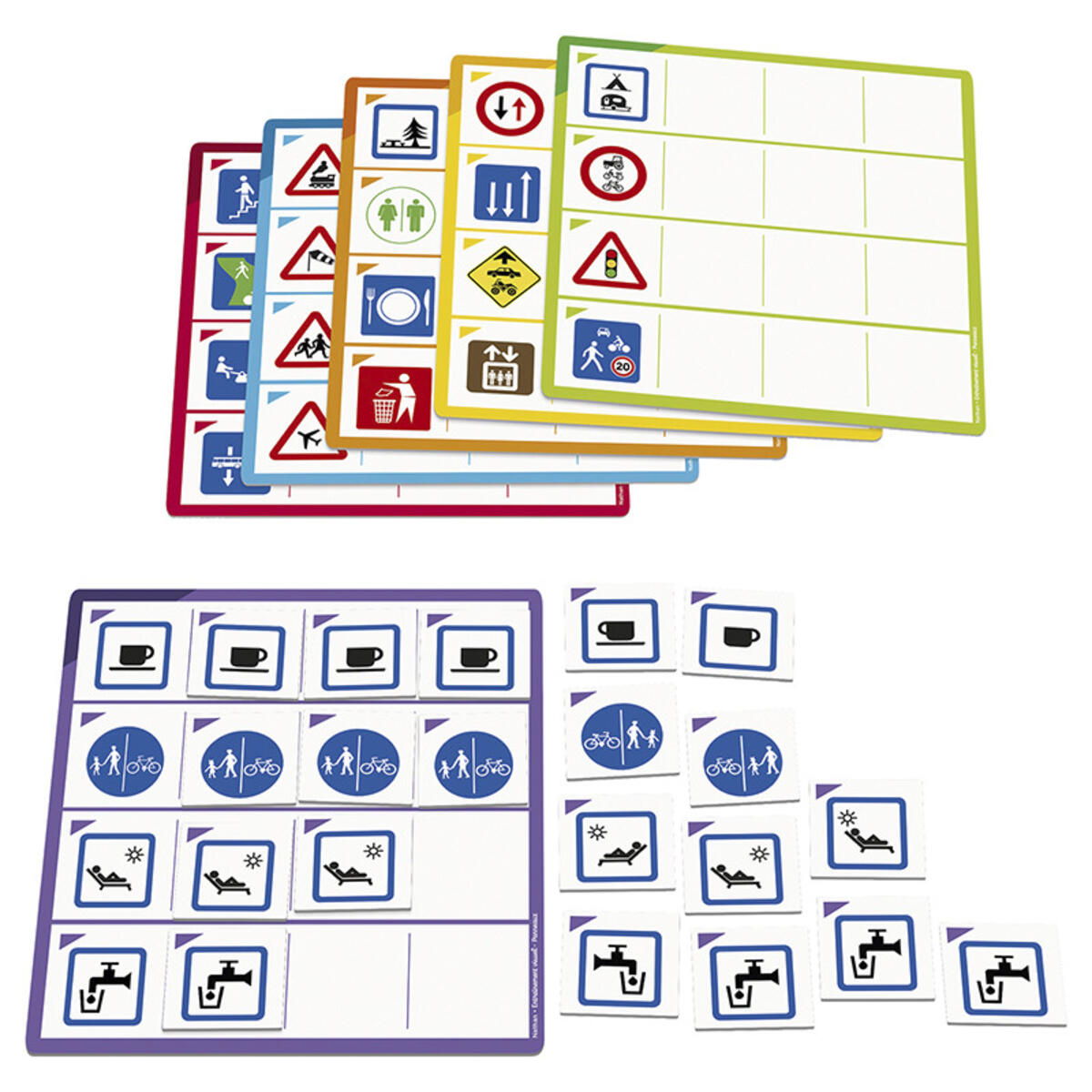 Med dette settet lærer barna å gjenkjenne forskjellige skilt som er like eller forskjellige på en eller annen måte. Ved å identifisere forskjellene forbereder de seg på å lese og skrive. Det er fire forskjellige brett og 120 magnetiske skilt.