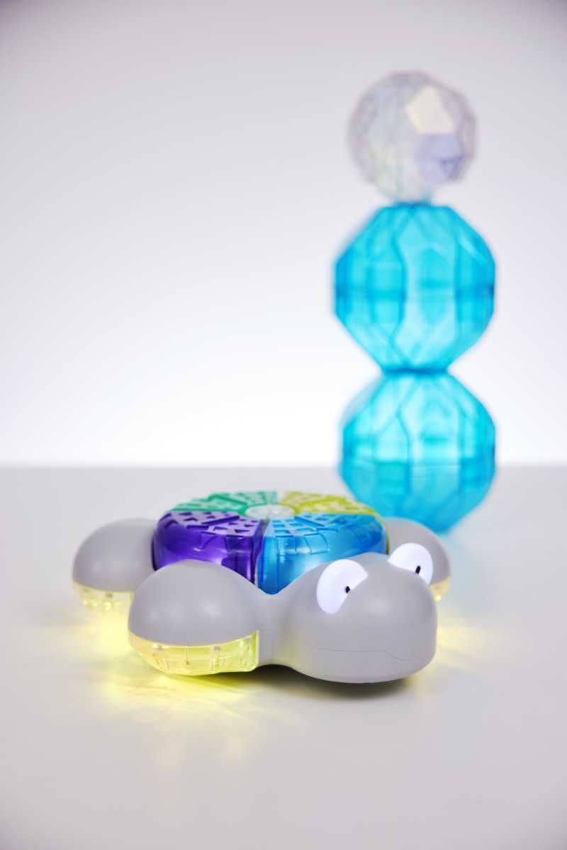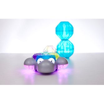 6 stk/pk. Blue-Bot er en gulvrobot med bluetooth, noe som innebærer at den kan styres fra et nettbrett eller PC. Elevene kan angi en algoritme på enhetens skjerm og sende trådløst til Blue-Bot som utfører handlingen. Elevene kan også programmere roboten med enkle knappetrykk på robotens rygg. Blue-Bot har transparent skall slik at elevene kan se delene inni og se hva som lager den surrende lyden. Blue-Bot kan svinge i 45° og det kan også oppgis repetisjoner i algoritmen. Sammen med Blue-Bot får elevene oppleve sammenhengen mellom årsak og virkning, trene på oppfølging og kontroll. Ladestastjon følger med. Mål: 12x10 cm. Passer fra 3 år og oppover.