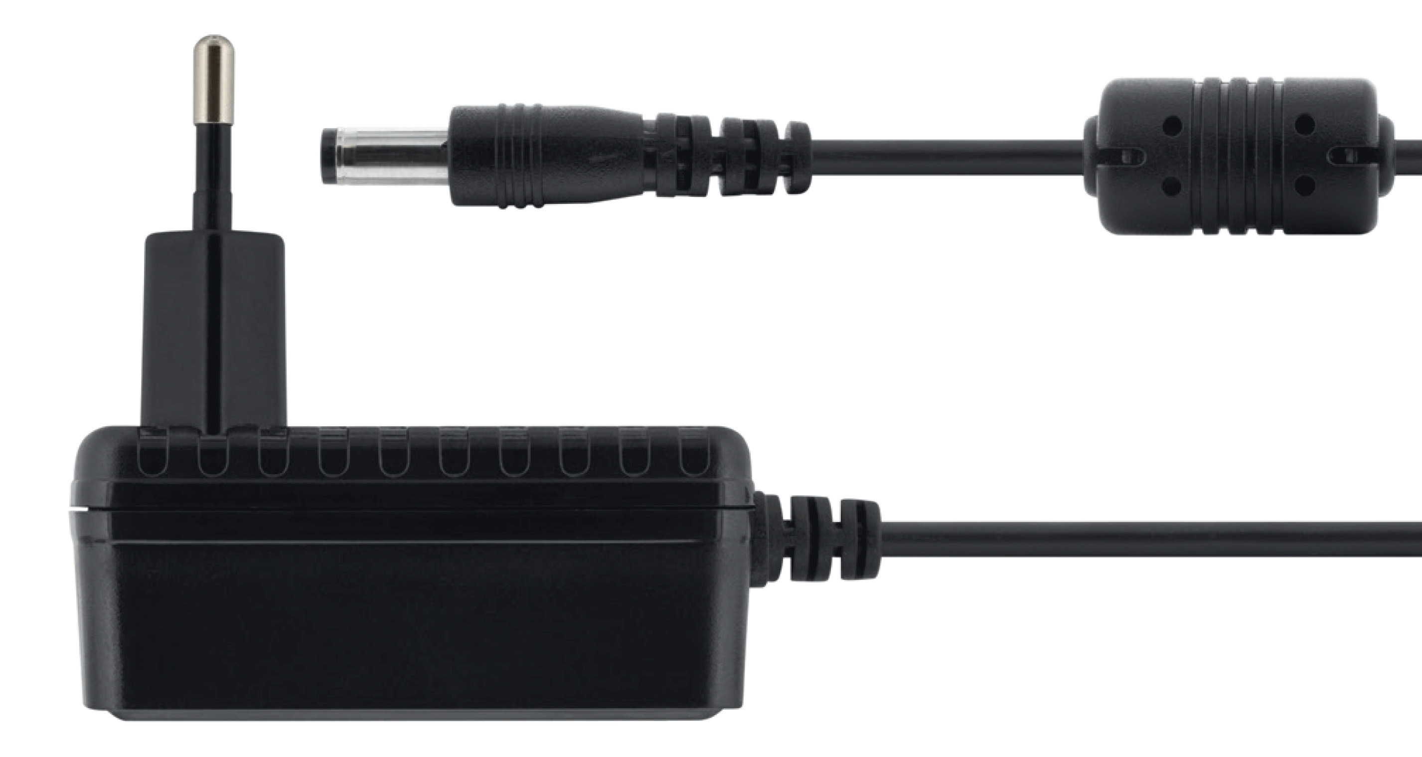 Kompakt strømadapter med minimalt standby-forbruk og LED som viser om strøm mottas. Polaritet: pluss i midten. Koblings indre/ytre diameter: 2,1/5,5 mm, dybde: 12 mm. Mål uten veggplugg (BxDxH): 39x65x62mm.