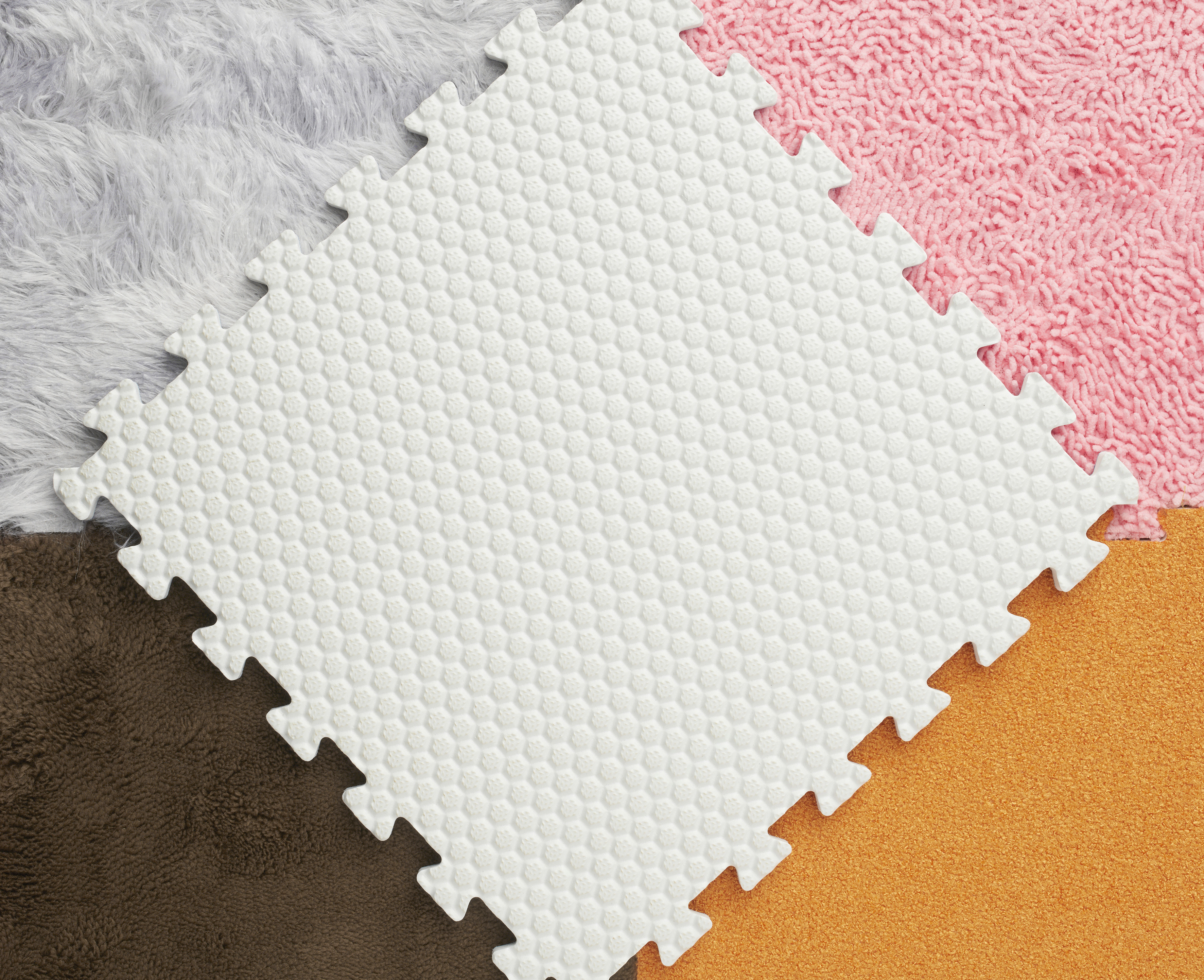 4 stk/pk. Støydempende lekematte som er enkel å sette sammen og forme etter rommets størrelse. Teppet gir et meget godt underlag for lek og samling. Fargemessig kan den fint brukes samen med Lekolars Fixaserie. Hver del er 50x50x1,5cm og vendbar for mulighet for å endre farge, det følger med 2 kantlister pr puslesspillbrikke. Av EVA.