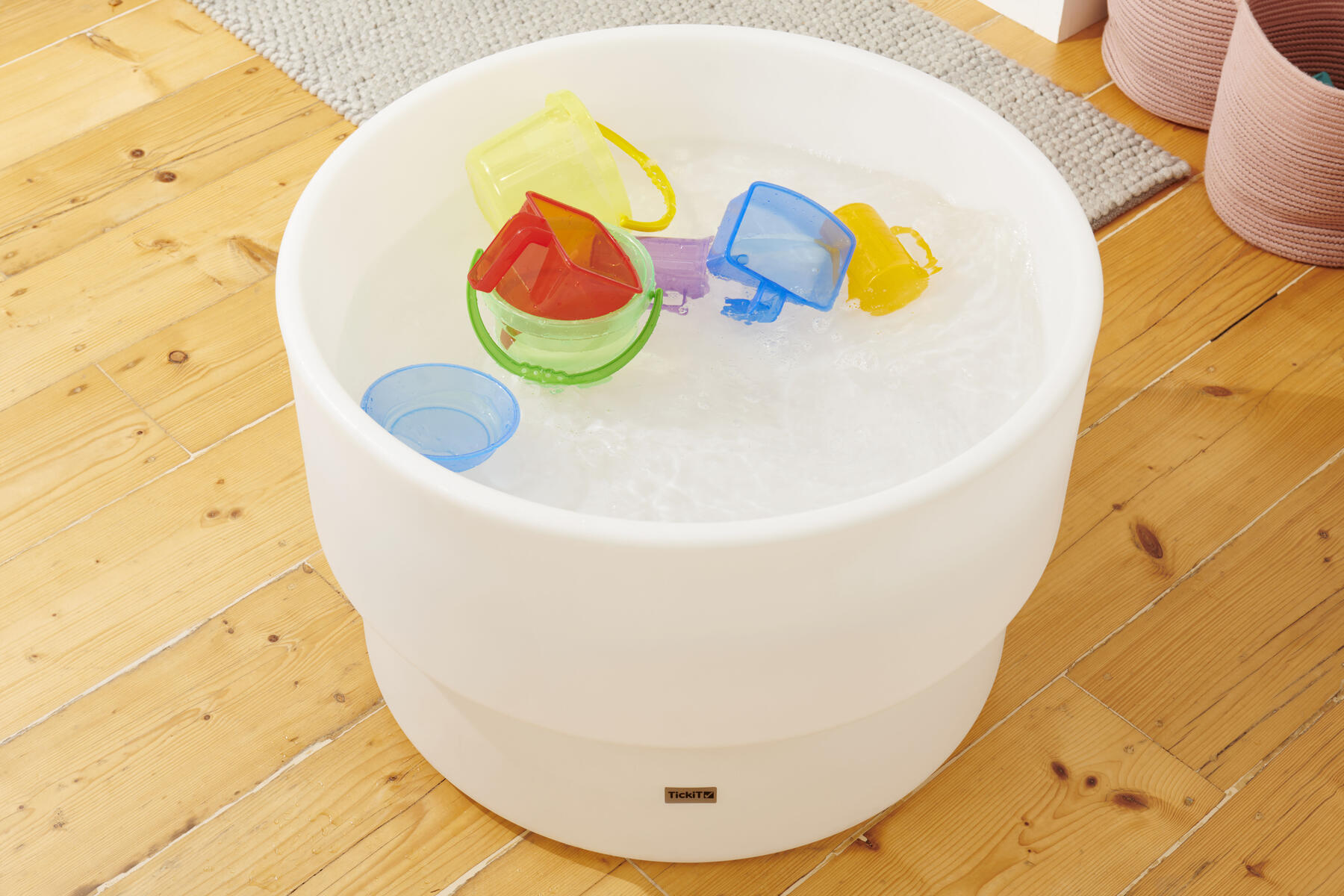6 stk/pk. Transparent fargede bøtter som passer fint for lek og eksperiment med vann eller sand. Fargene passer med begrene 13620 slik at man kan kombinere og øke de pedagogiske mulighetene. Kan stables. Av ABS. Høyde 12 cm, Ø12,2 cm. Fra 1,5 år.