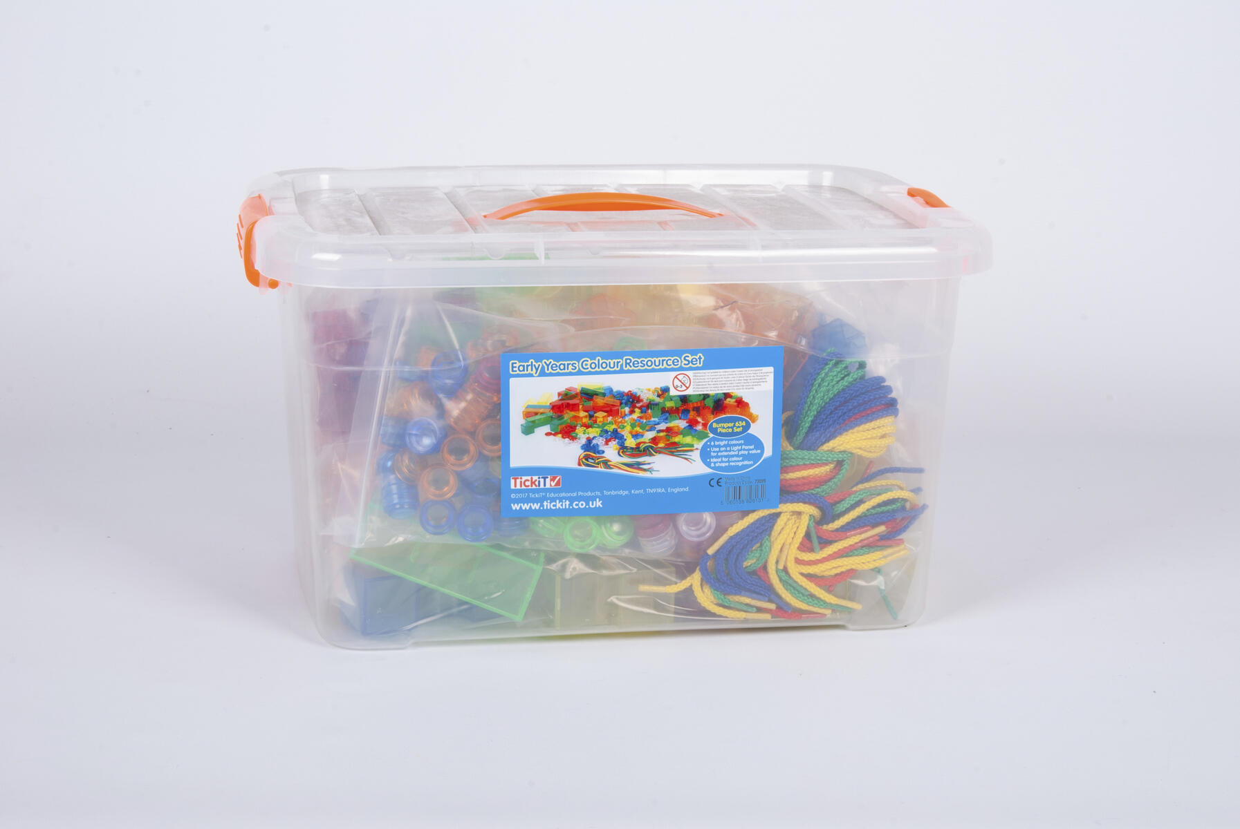 630 transparente deler, ideell for bruk på lysbordet hvor du kan oppdage farger, former, mønstre, telle og sortere, trene på finmotorikk, konstruksjon og kreativ lek. Alt leveres i en praktisk boks. Fra 3 år.