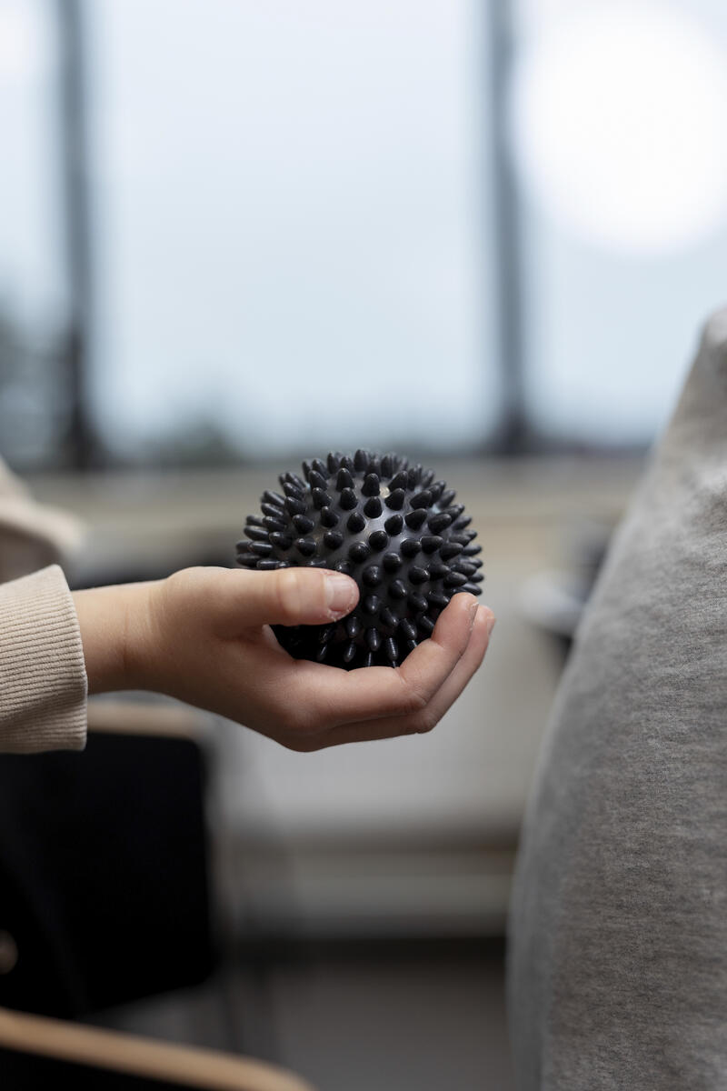 Ergonomisk og taktil massasjeball for økt blodsirkulasjon og sansestimuli. Lett å gripe og kan rulles over hele kroppen, på seg selv eller mellom elever. God å holde i hånden for å lette konsentrasjon og læring for elever som har problemer med å sitte stille. Ø8,5 cm. Materiale: TPR. Motstand: Hard.