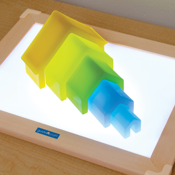 35 deler. Et lysende sensorisk sett med flere ting som lyser i forskjellige farger. Bruk stativet til pinner og baller eller bygg med klossene. Fra 1 år.