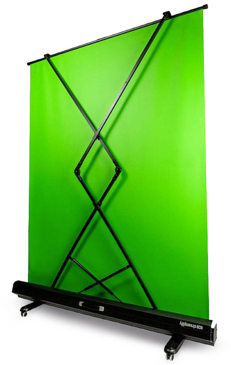 Alt du trenger for å kunne bygge et mobilt green screen-studio. Inneholder 130623 Greenscreen på stativ, 140738 Lampe, 137957 Feste for nettbrett, 137958 Stativ.