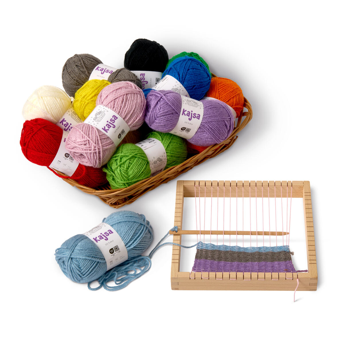 6 kg/pk. 100% akryl. Strikkepinner 4 mm. Strikkefasthet 20 m = 10 cm. Vaskeanvisning: 40 ºC.20 nøster x 50 g/farge i følgende farger: gul, rød, blå, grønn, svart og hvit. OEKO-TEX®-sertifisert, klasse I (Standard 100). PVC-fri.