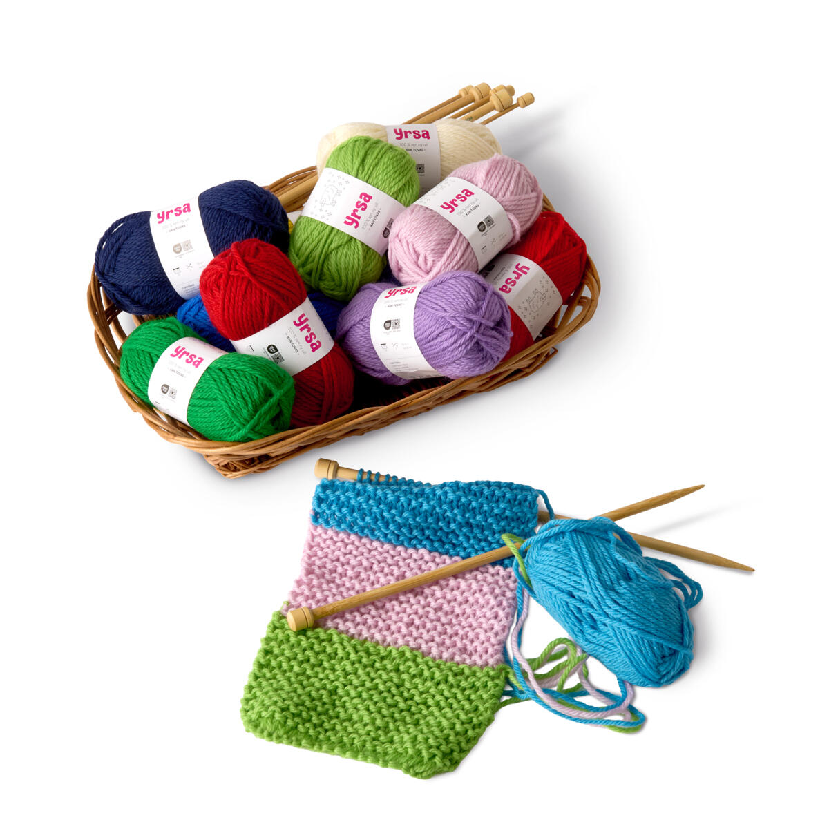 6 kg, 6 farger, 1 kg/farge. Gul, rød, blå, grønn, ubleket og svart. 50 g nøste. 100% ren ny ull. Vaskeanvisning 30 °C. Pinnestørrelse 7. Strikkefasthet 13 m = 10 cm. 50 meter pr. nøste. Ullråstoffet kommer fra ullprodusenter som garanterer at mulesing ikke må forekomme. Banner med trykk i henhold til godkjent kunstverk. OEKO-TEX®-sertifisert, klasse I (Standard 100).