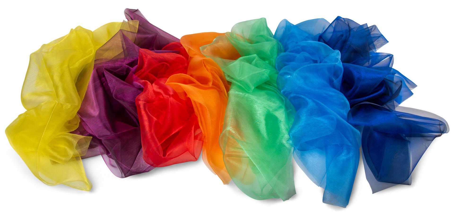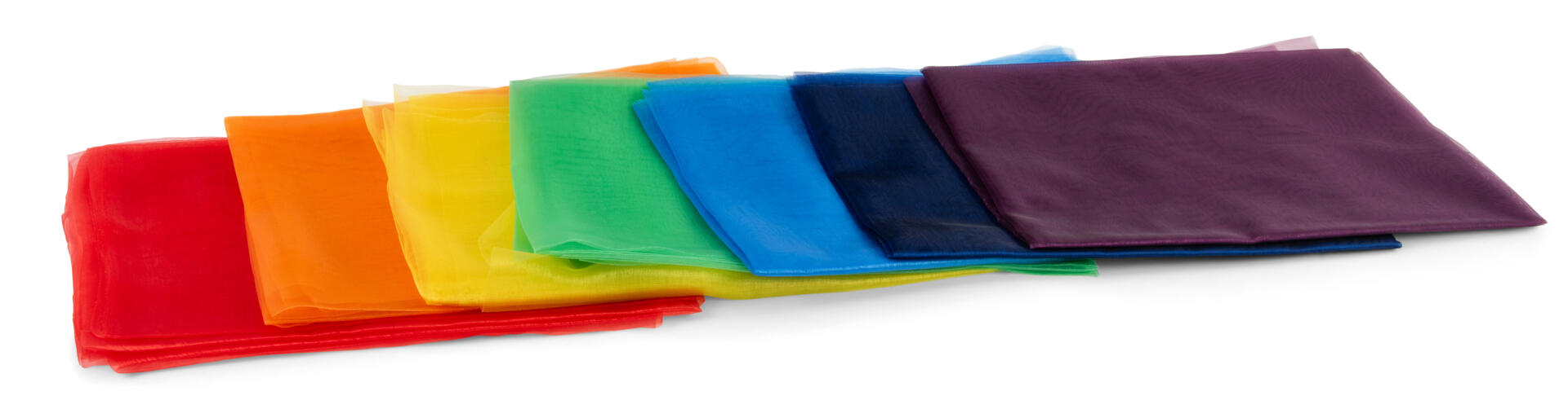 7 tøystykker i ulike farger. Morsomme å bruke i rollelek eller for å lage sensoriske visuelle effekter til musikk og bevegelse. Hver bit måler 1x1,5 m.