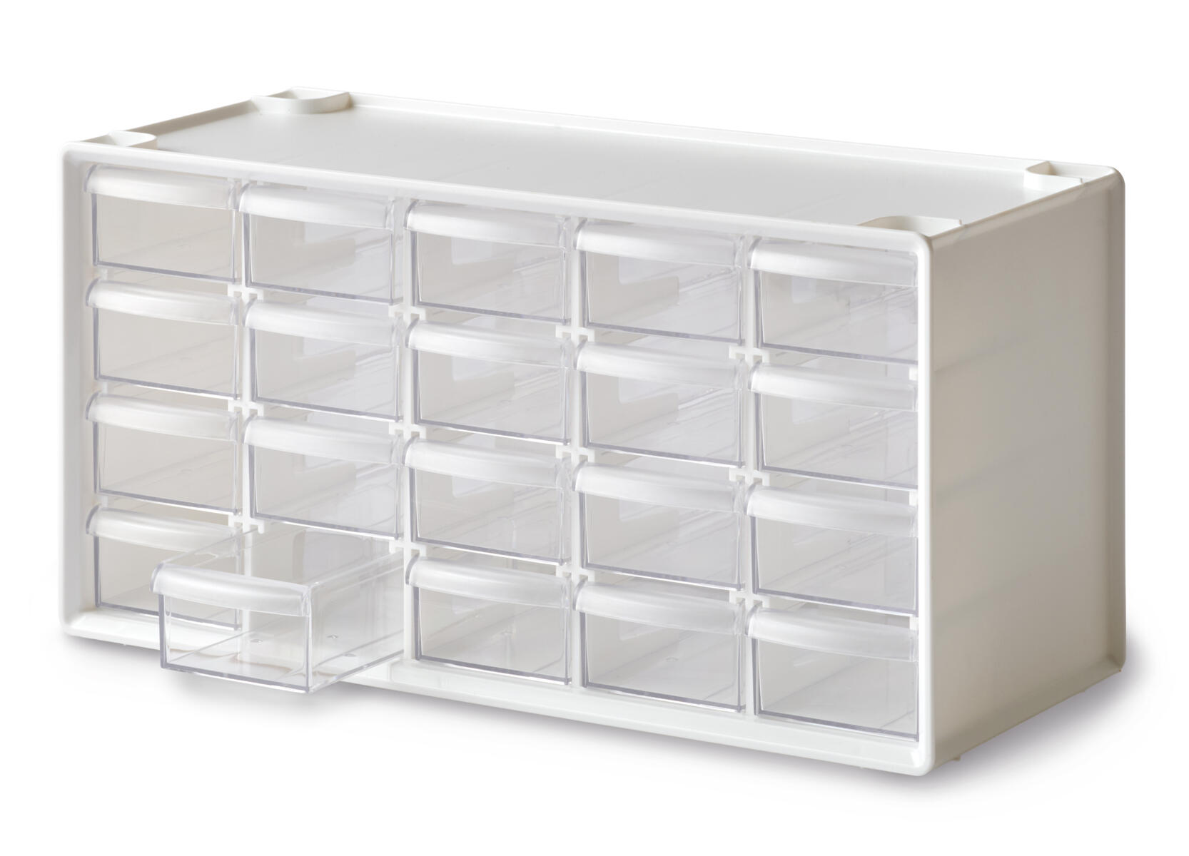 Praktisk oppbevaring som gjør det enkelt å holde orden på småtingene. Perfekt til hobby- og sytilbehør. Mål: B38xD15xH19 cm, rom B6xD13xH4 cm. Skuffene tas enkelt ut ved å vippe dem litt oppover. Laget av PS.