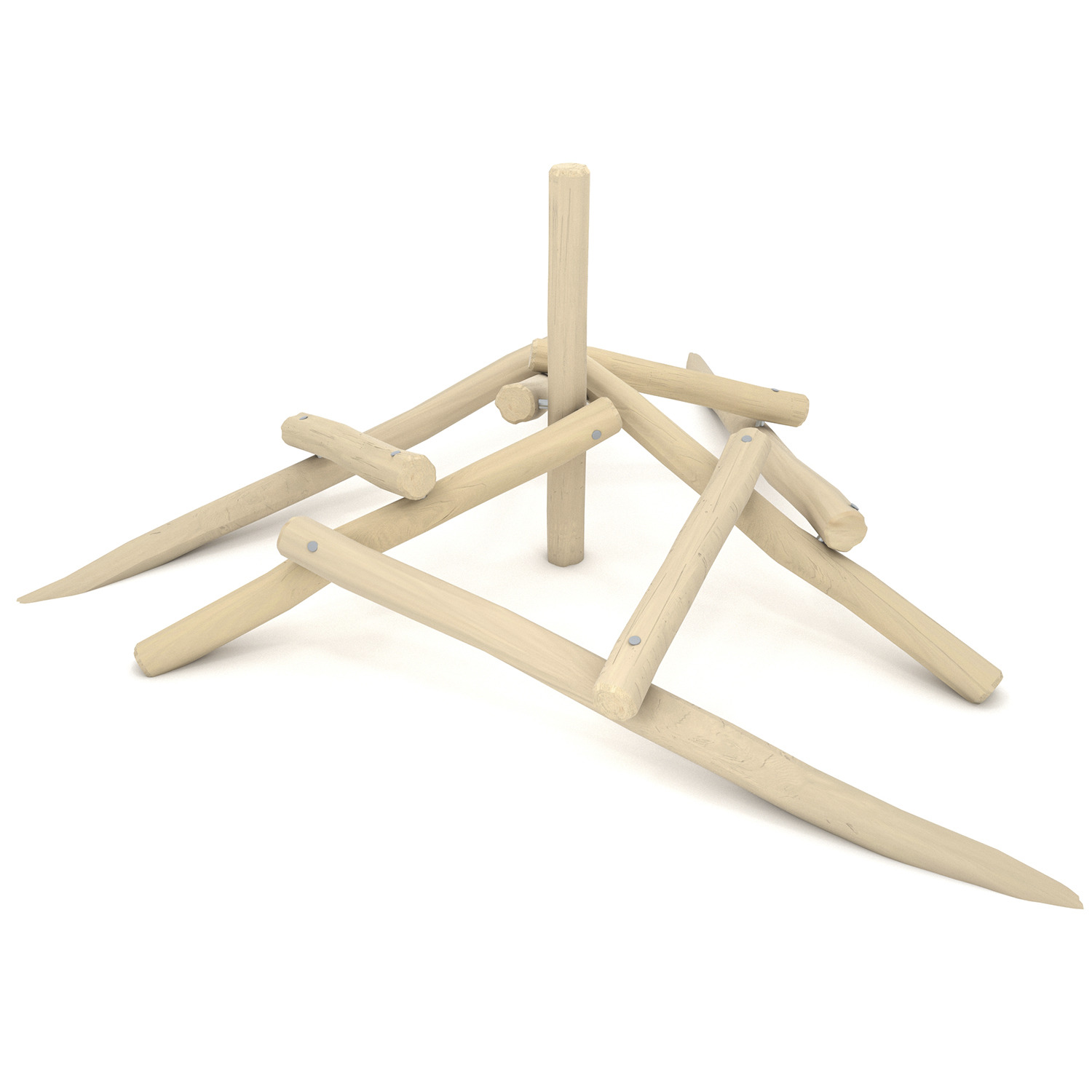 Klatreplass med 10 stokker i robinia, et tremateriale som er værbestandig, absorberer lite vann og er ekstremt holdbart. Se produktblad for materialspesifikasjon. Ved montering/installasjon skal alltid manualen som medfølger produktet ved levering benyttes. Den nyeste versjonen er tilgjengelig på forespørsel.
