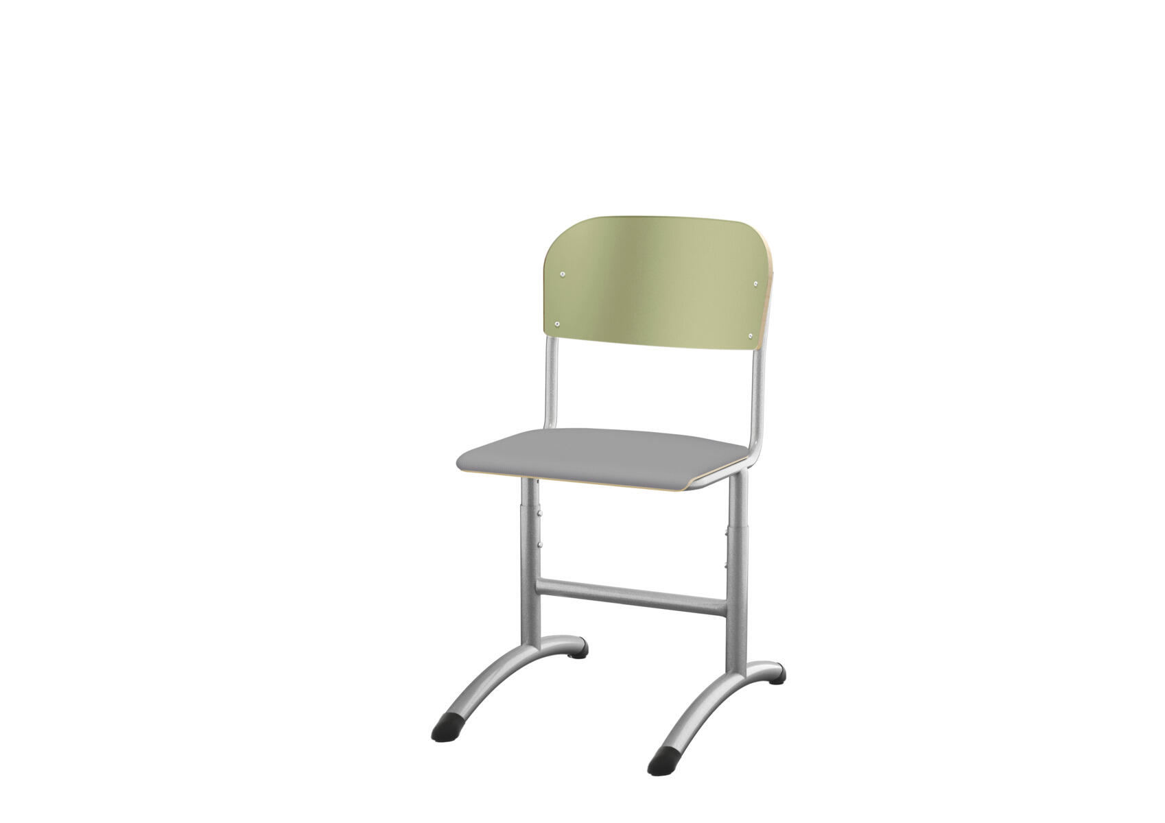 En god stol som kan stables 4 stoler i høyden og er enkel å henge opp på bodet. Stillbar i 4 høyder 45, 51, 57 og 63 cm. Sete og rygg i høytrykkslaminat. Med fotstøtte. OBS! Øvre del av stolen skal alltid ha 2 hull i nedre rørdel. Stort sete. Maks sittehøyde er 63cm.