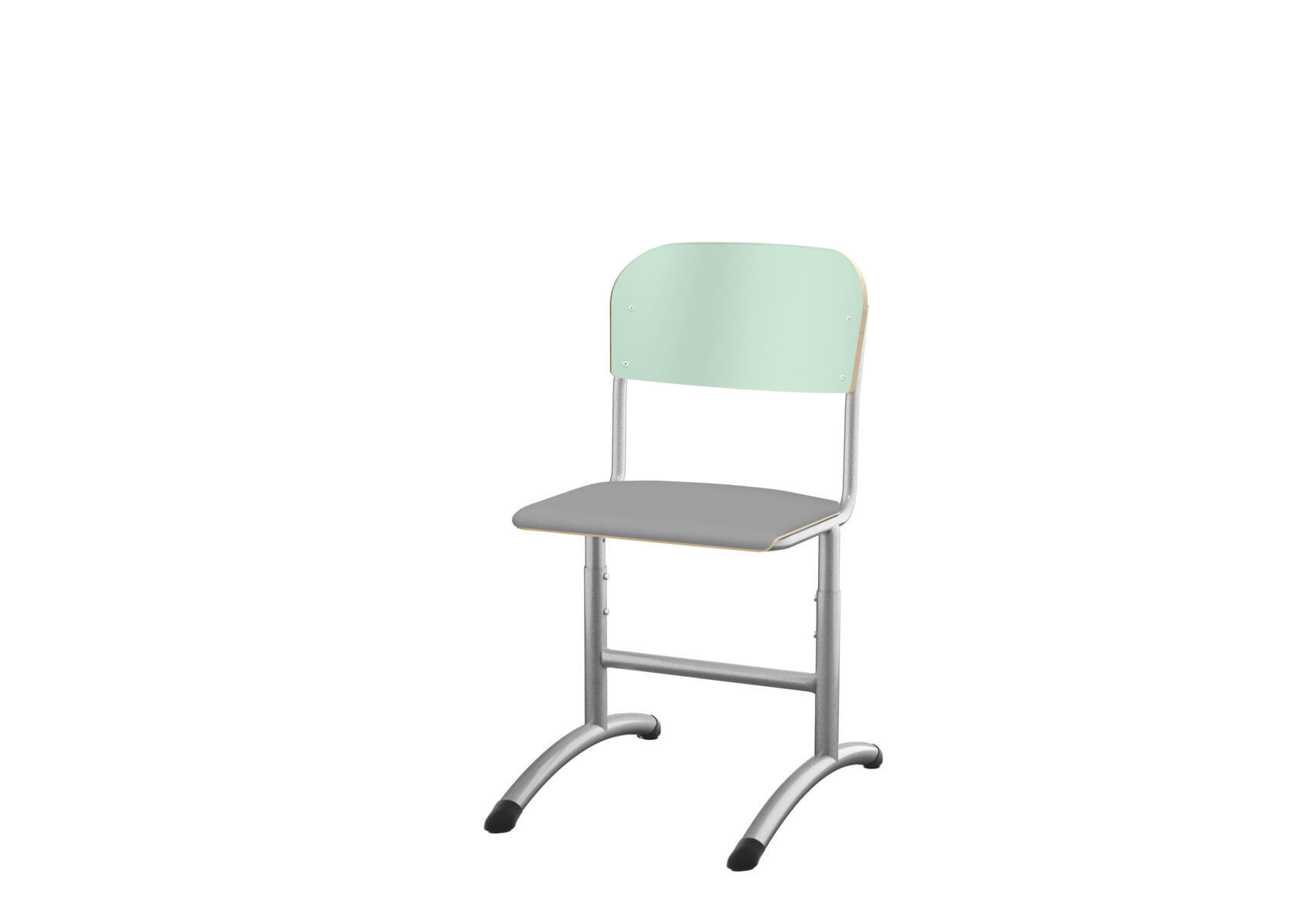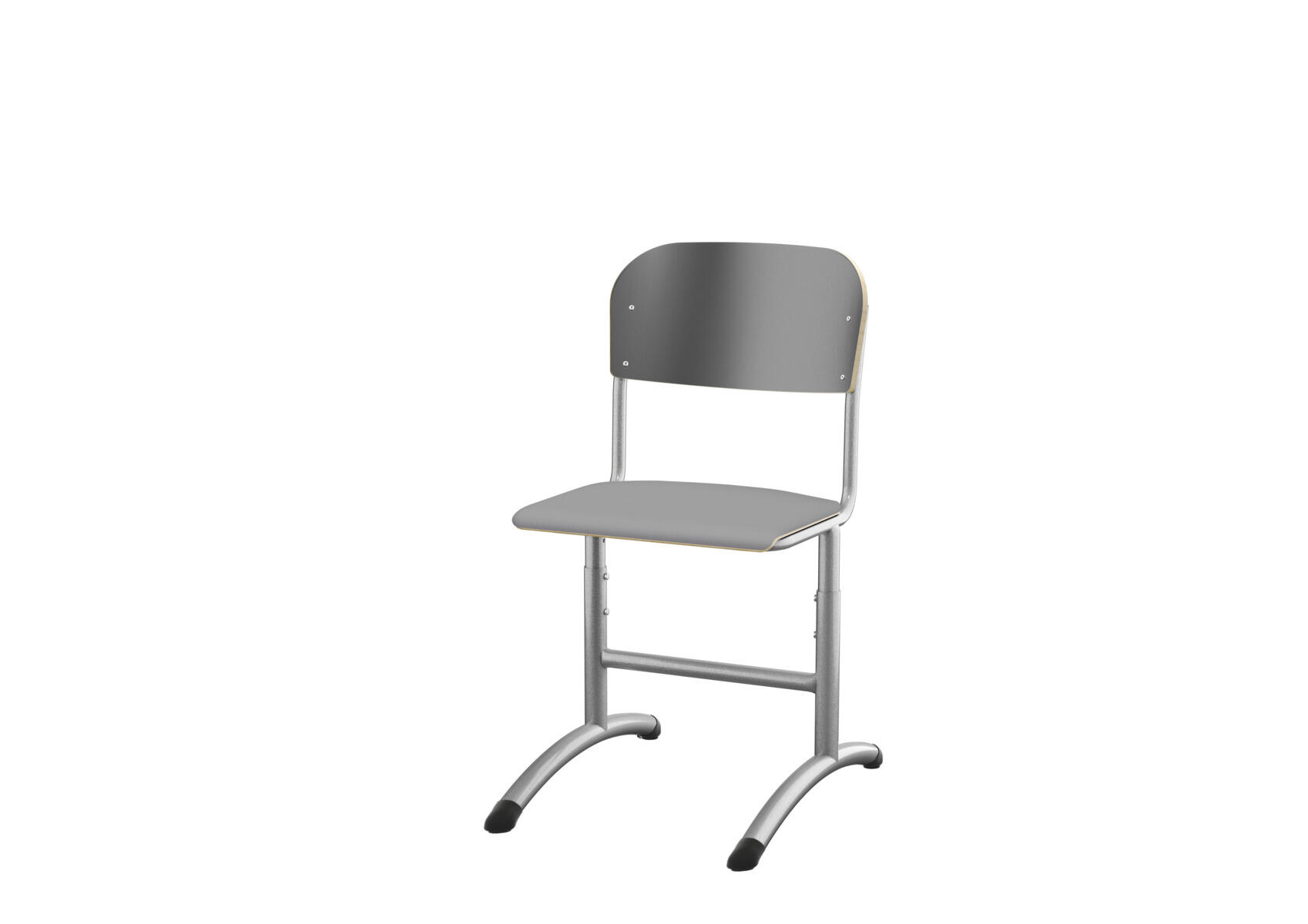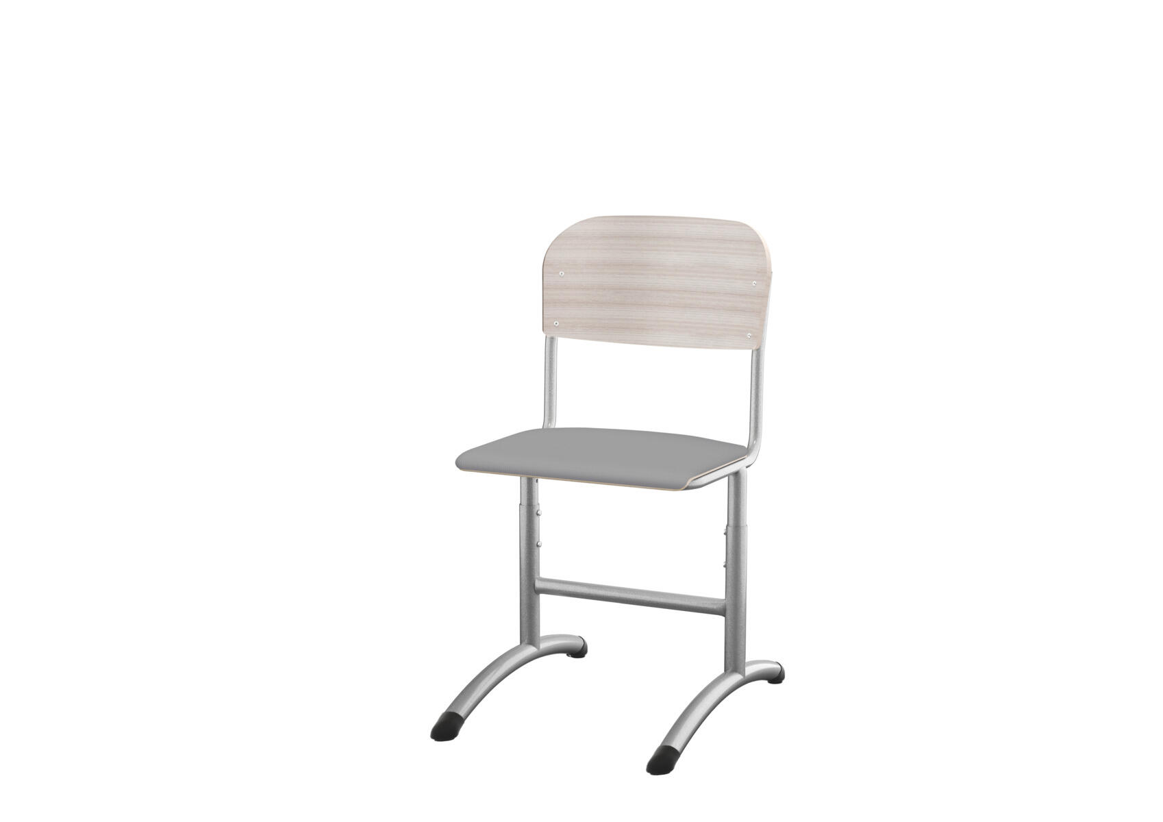 Sete og rygg belagt med høytrykkslaminat. Epoxylakkert understell i sølv RAL 9006. Stillbar i høydene 38, 43, 46 og 51 cm. Setebredde 42 cm, sittedybde 39 cm. Vekt 5 kg. Justerbare føtter.