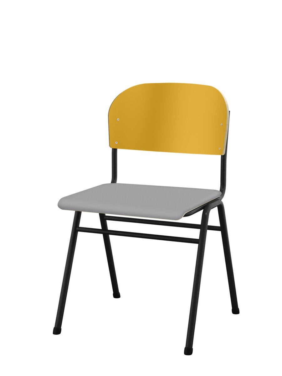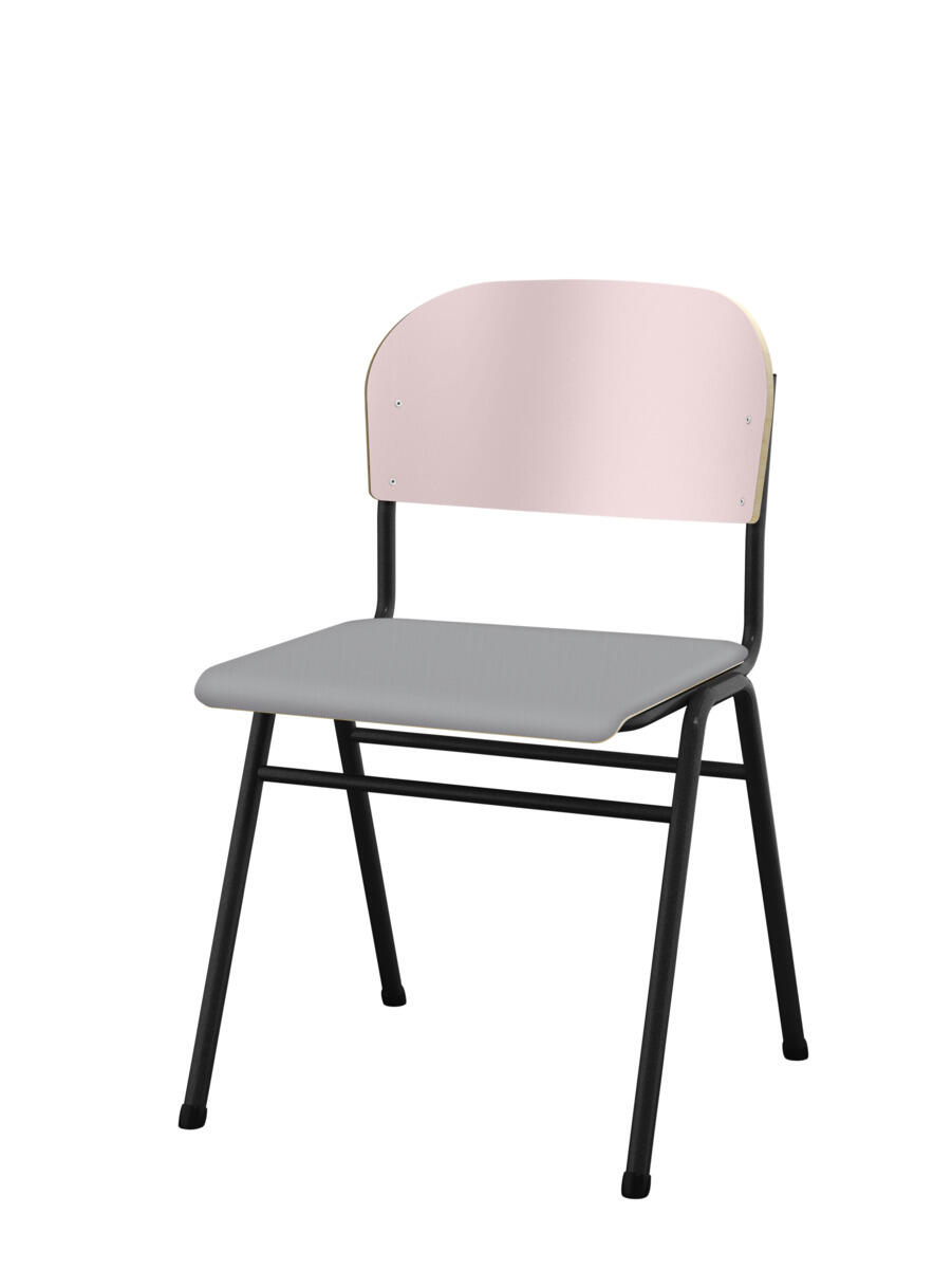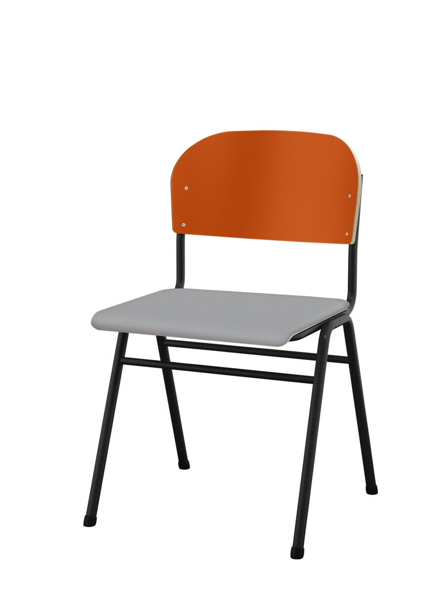 En god stol som kan stables 4 stoler i høyden og er enkel å henge opp på bodet. Stillbar i 4 høyder 45, 51, 57 og 63 cm. Sete og rygg i høytrykkslaminat. Med fotstøtte. OBS! Øvre del av stolen skal alltid ha 2 hull i nedre rørdel. Maks sittehøyde er 63cm.