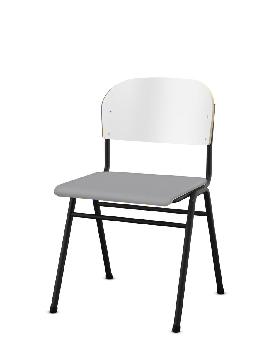 Kan stables, maks 4 stoler i høyden. Støydempende føtter. Kan henges opp på bord. Sete og rygg i høytrykkslaminat. Regulerbart fotbrett i 3 faste høyder. Epoxylakkert understell hvit RAL 9003. Sittehøyde 50 cm. Setemål: 36x35 cm. Totaldybde på stolen 54 cm. Vekt 4,6 kg