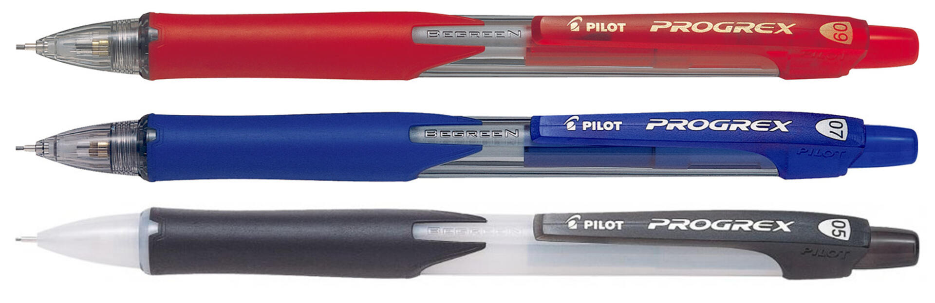 12 stk/pk. Trykkblyant med gummiert pennekropp i ass farger, forniklede metalldeler og fjærende mekanisme. Fast stiftrør. Innholder 3 stk HB 0,7 mm stifter.