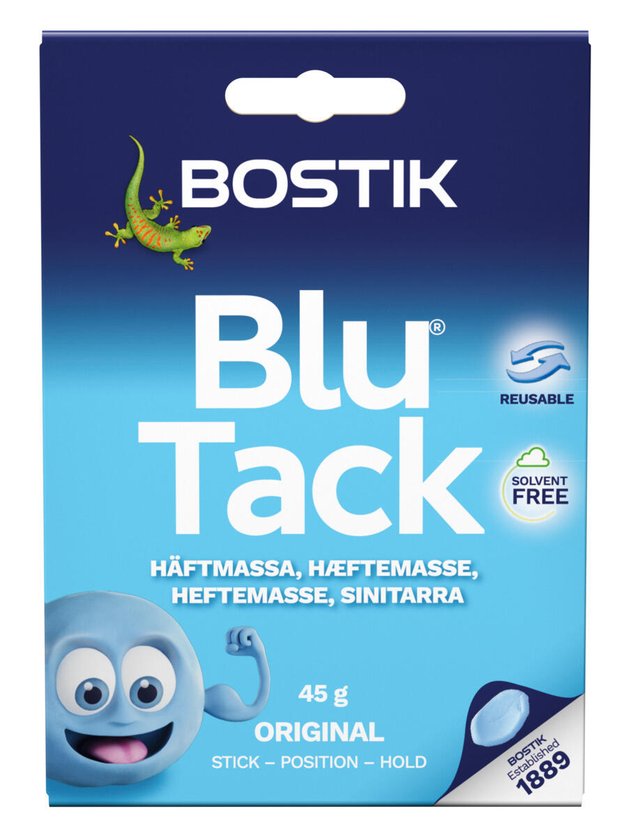 Heftemasse fester beskjeder, plakater og andre lette ting på ulike underlag. Tørker ikke ut og kan brukes om igjen. Risiko for flekker på matte tapeter og vegger. Inneholder ikke PVC. Vannbestandig. Inneholder 142 ruter med heftemasse.