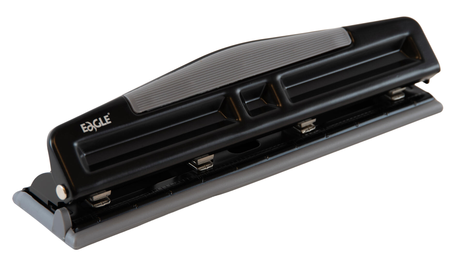 80 mm hullavstand. 2 hull: Klarer opp til 20 ark, 5 mm hull. 4 hull: Klarer opp til 10 ark. 7 mm hull. Av metall og ABS plast. Står stødig på beholder av polypropylen.
